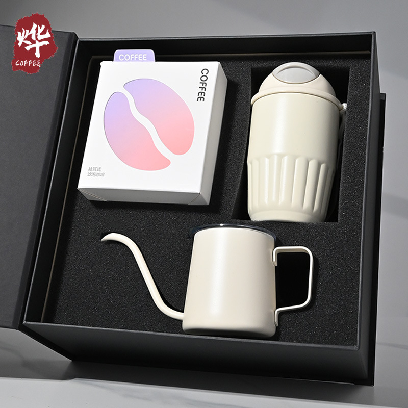 手淹れコーヒー用ギフトボックス、ガラスカップ、手淹れポット、挽きたてコーヒー器具セット、ビジネスギフト