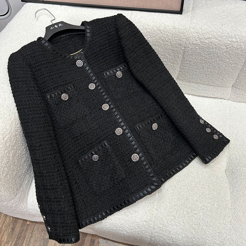 フランス風の重厚なビーズ刺繍が施された黒のファッショナブルで汎用性の高い、上品なデザインの小香風ジャケット28136