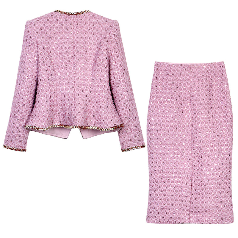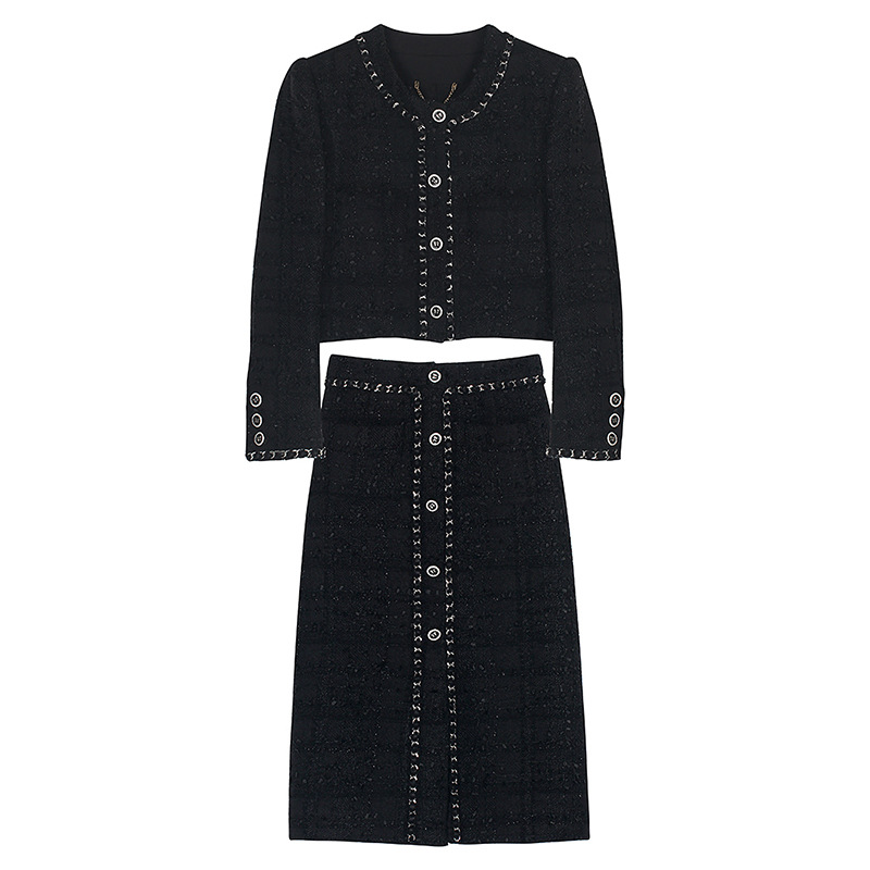 重工小香風半身スカートセットヨーロッパ駅スパンコールツイード2セット28905