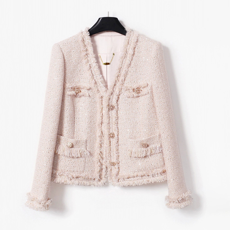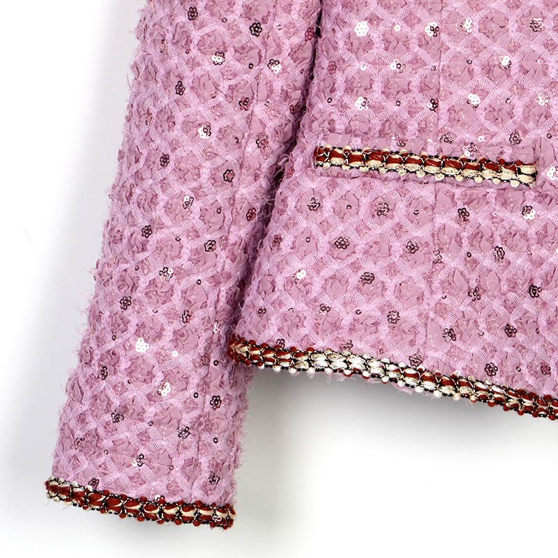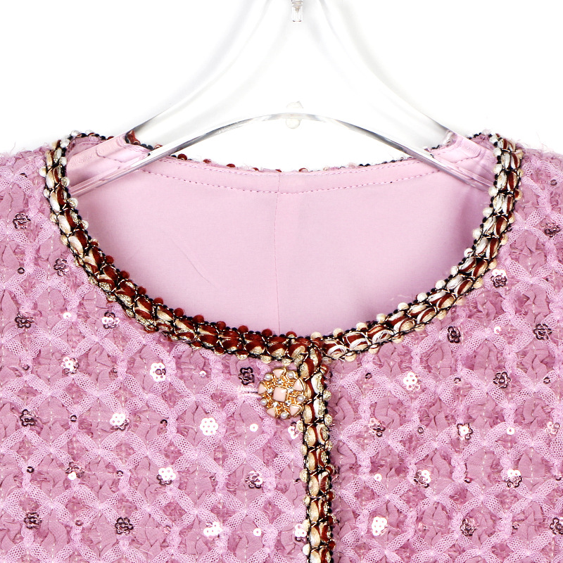 フレンチロマンティックピンクの小香風ジャケット、エレガントな淑女風トップス25108
