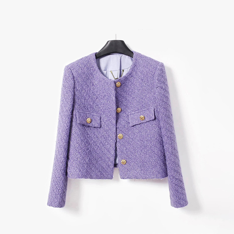 2025年ファッショナブルなパープルの高級軽量ラグジュアリースタイルツイードショートジャケット25110
