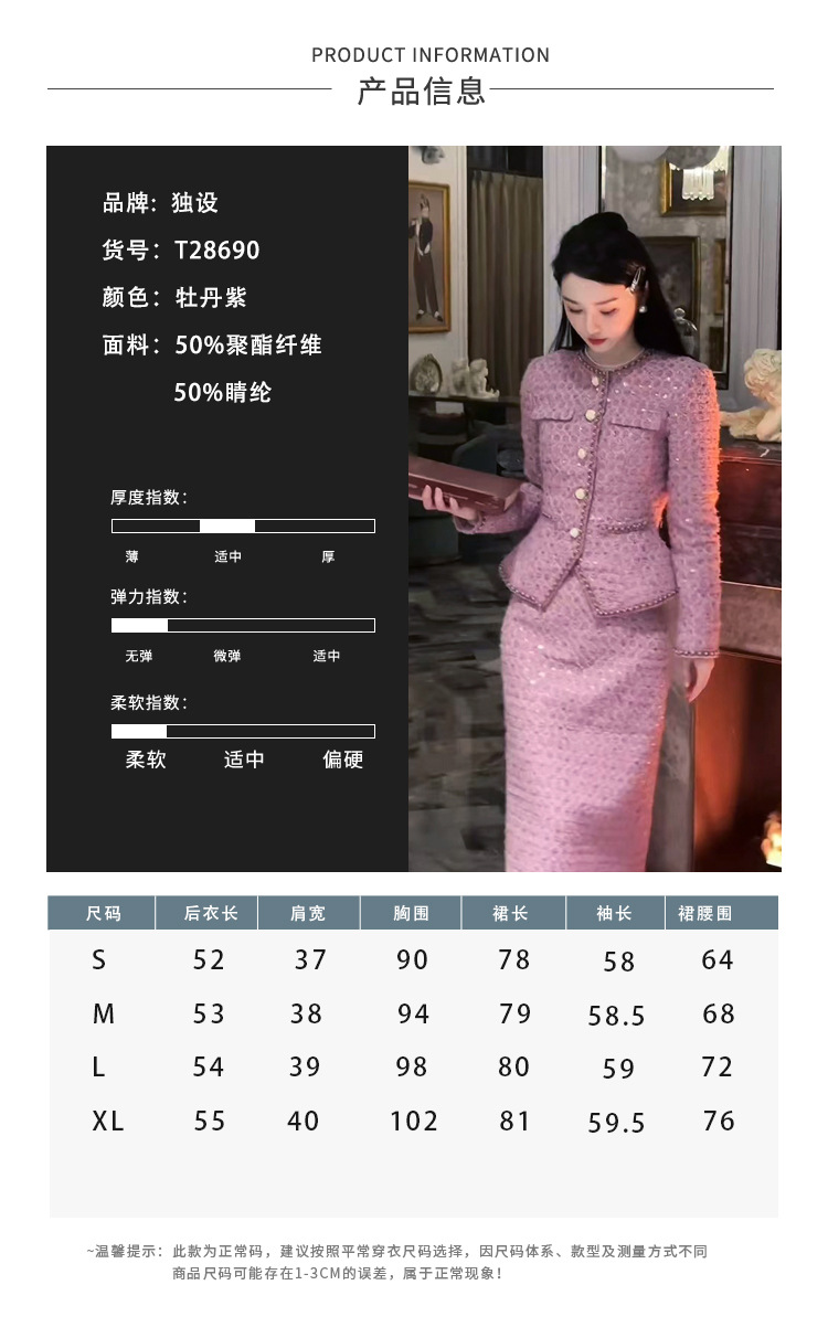 富家千金名媛小洋装高級感小香風牡丹紫二枚セットスカート28690