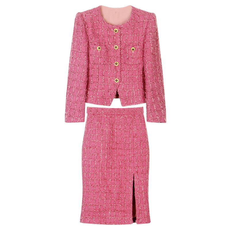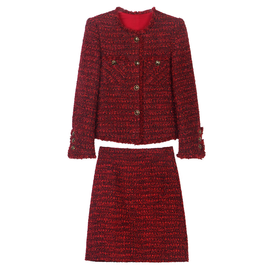 アンコラ紅小香風ツイードスーツ名媛洋気高級感カバースカートT28903