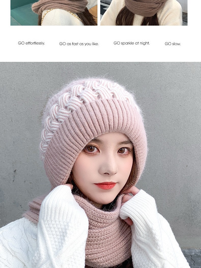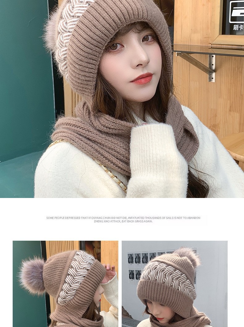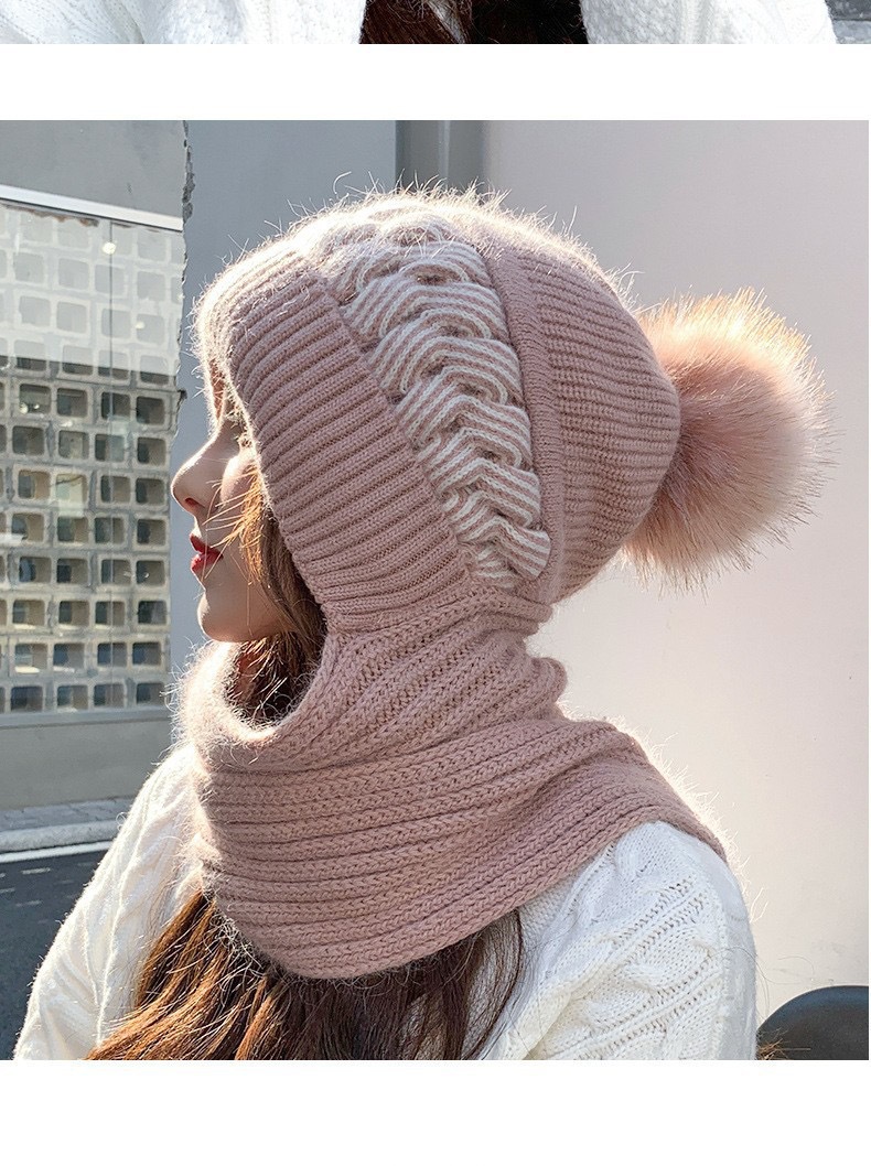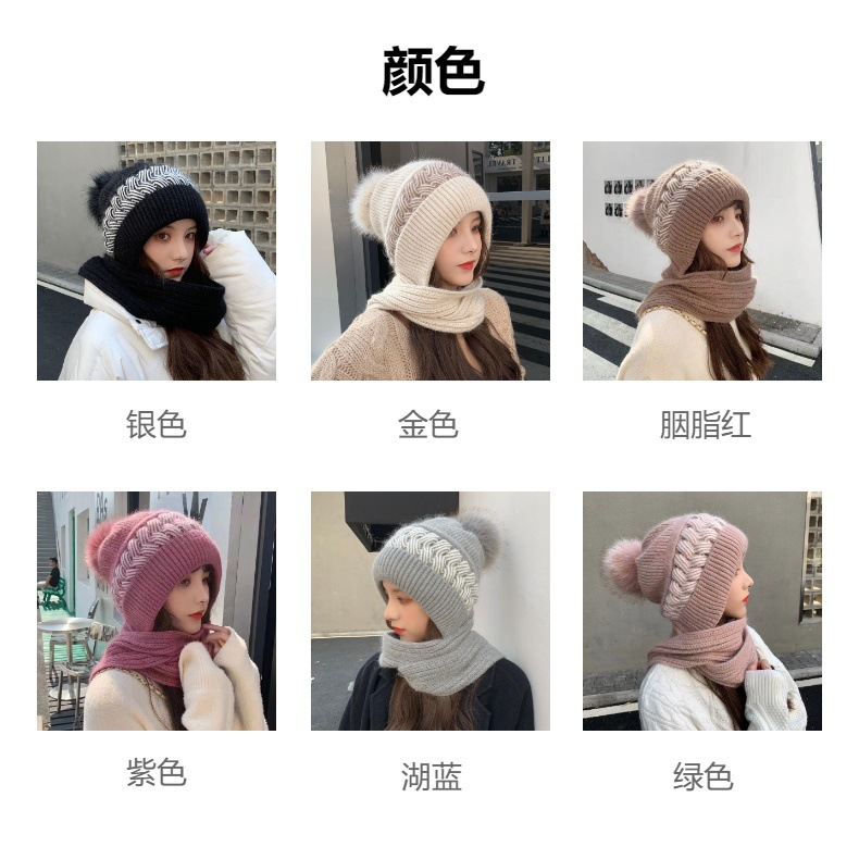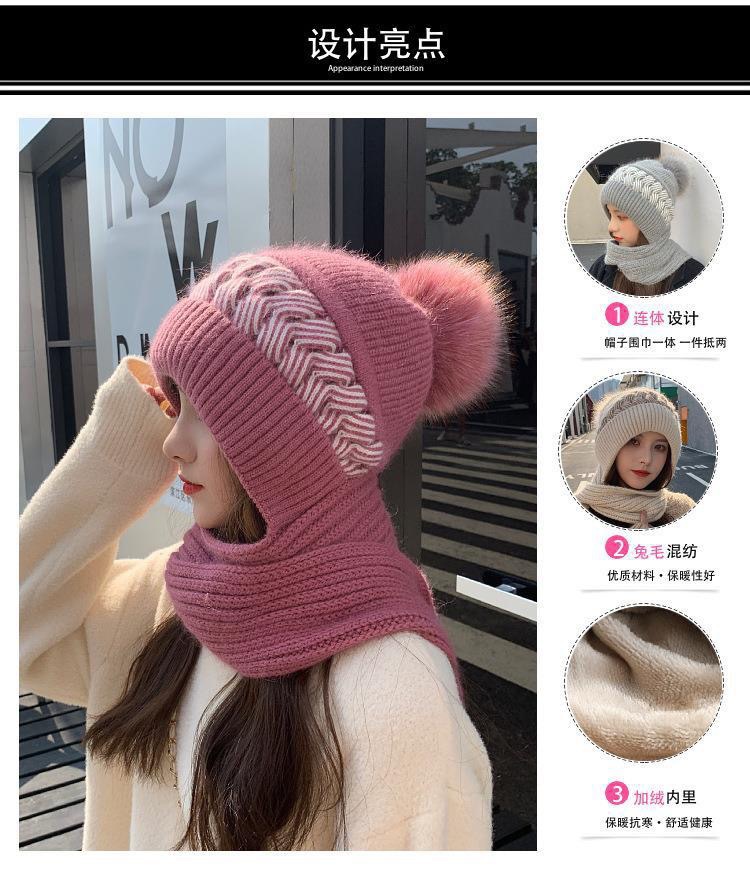 スカーフ一体型ベルベット厚みのある女性用暖かい新しい帽子冬の耳保護と顔保護ニットウールフード付きスカーフ
