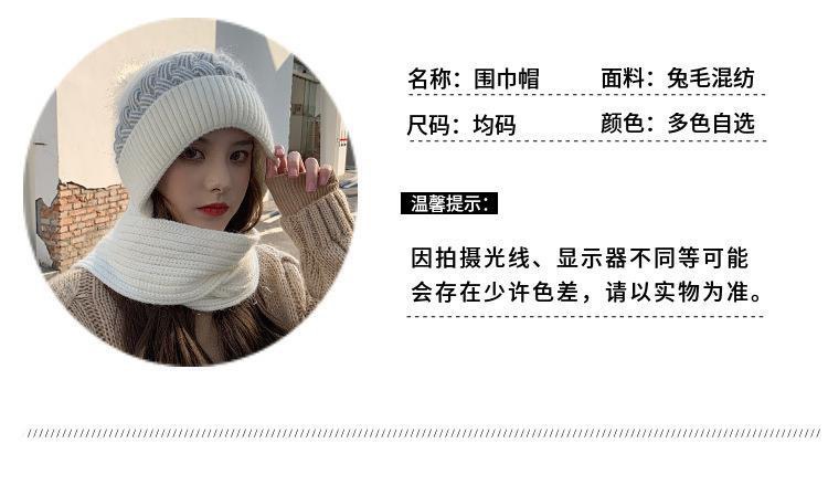 韩版毛绒可爱狐狸耳帽子围巾一体女秋冬季脖骑车保暖两件套连帽围