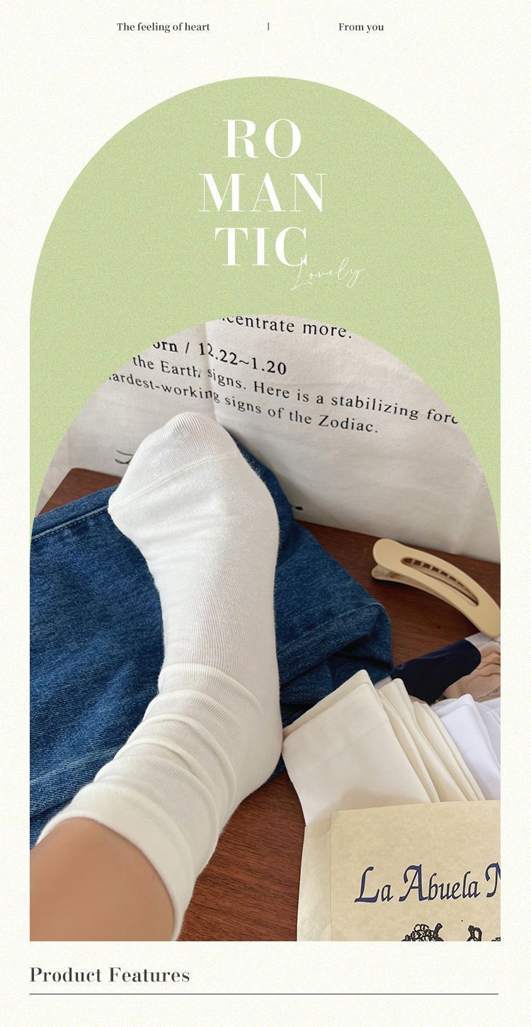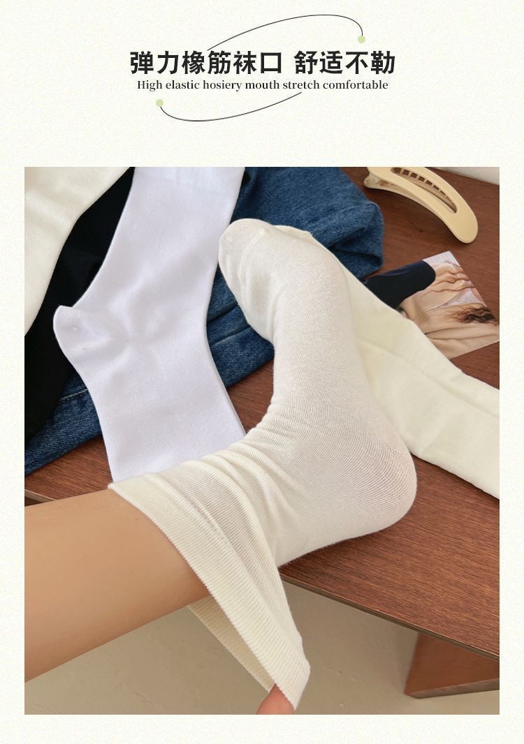 小紅書同項/抗菌無骨靴下月子日系学院風中筒靴下秋白色insスタック靴下