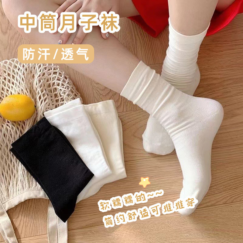 靴下の女性の中筒の積み重ねの靴下の春の夏の日系の白黒の純色の中筒の靴下のinsの潮の長い筒の月子の靴下