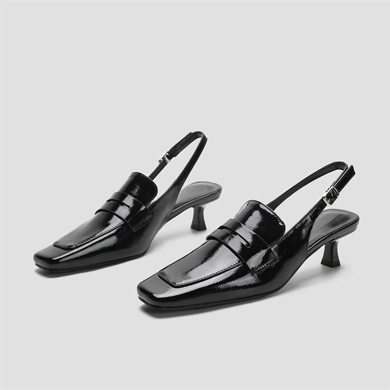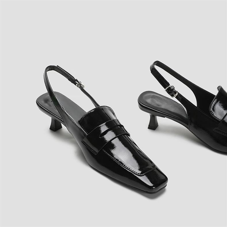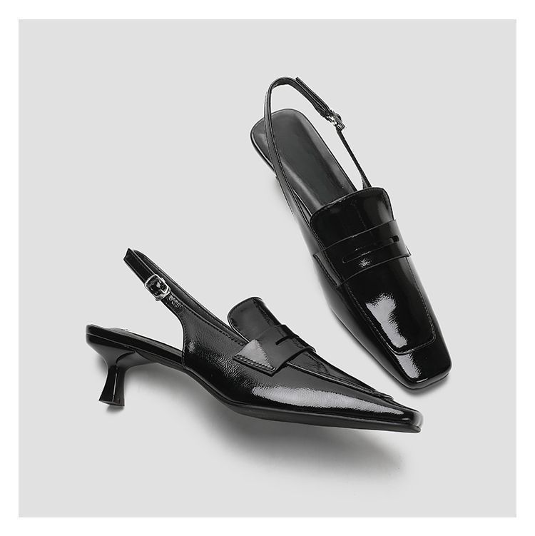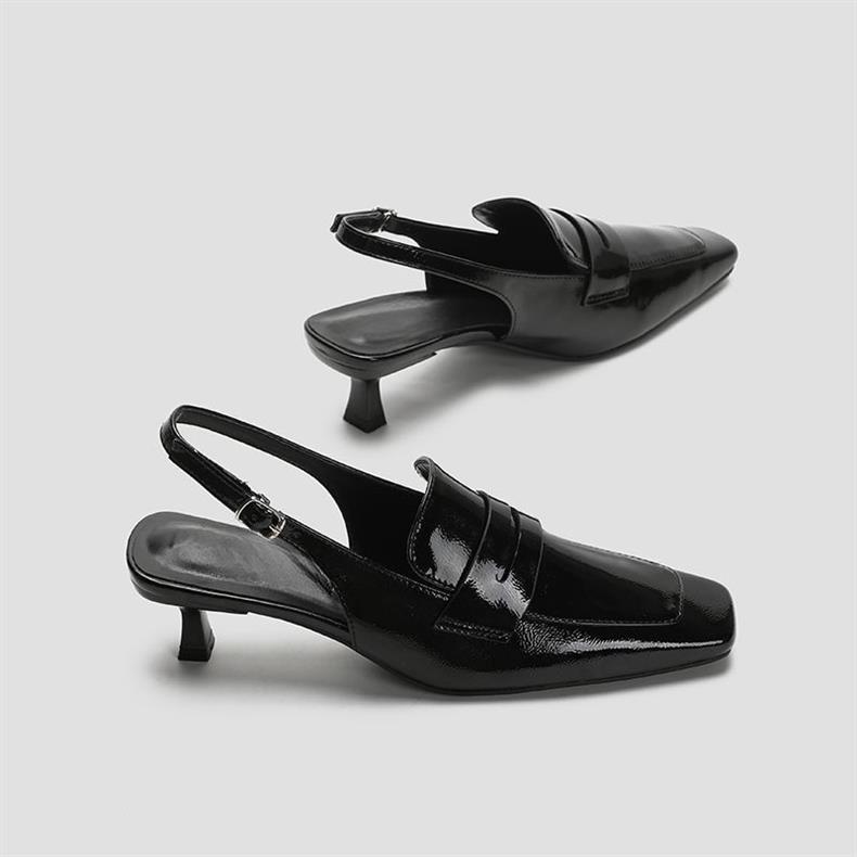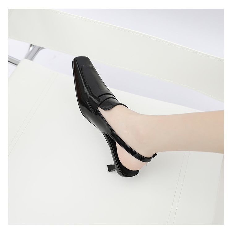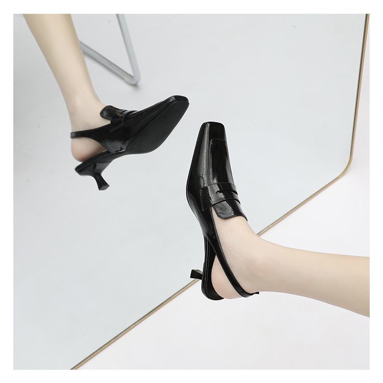 フランス包頭サンダル女性のための 2025 新しいスクエアトゥ子猫ヒールバック中空ハイエンド黒ハイヒールシングルシューズ女性のための