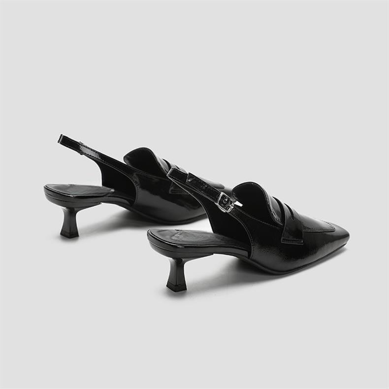フレンチスタイルの子猫ヒール空のバックシューズ2025新しいポインテッドトゥブラックスリッパニッチプロフェッショナルハイヒール女性用