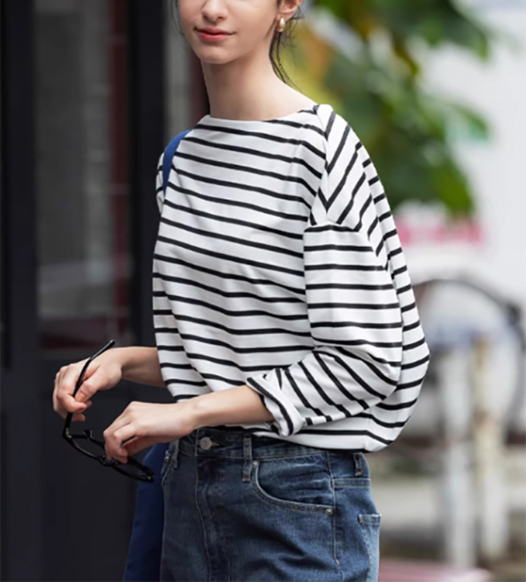 韓国版の秋のtシャツの女性はシンプルでカジュアルでゆったりしていて、やせています。