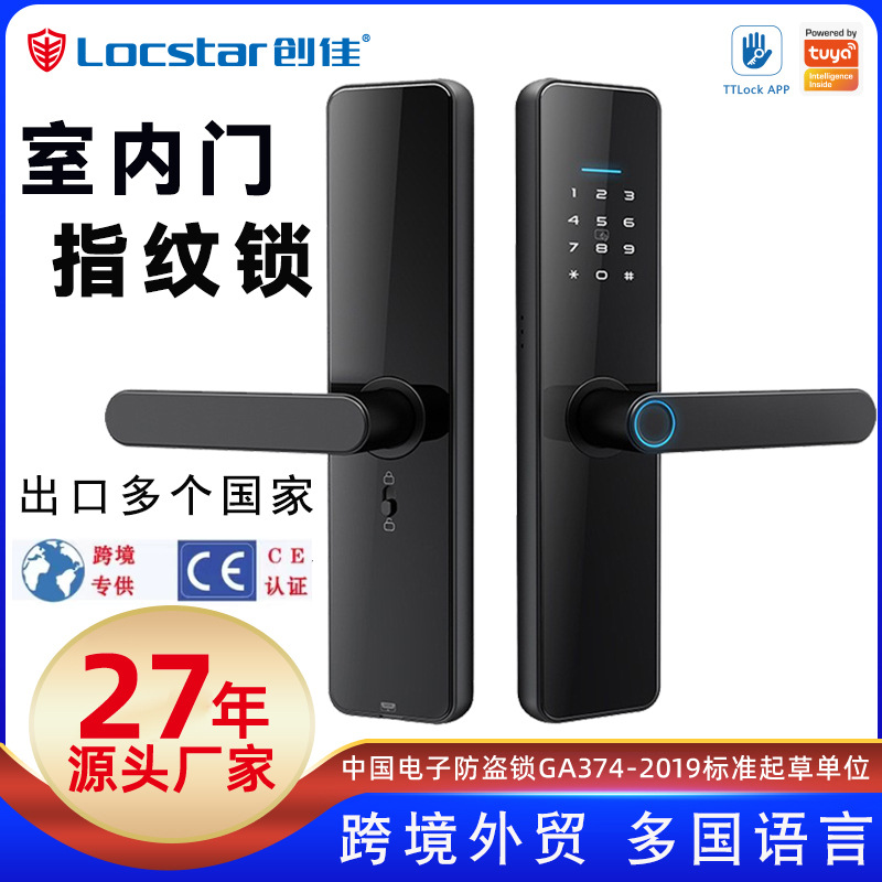 屋内ドアロック、Tuya Tongtong Lockアプリ、ワンタッチ開錠、指紋パスワードスマートドアロック、10ヶ国語対応の国際専用供給
