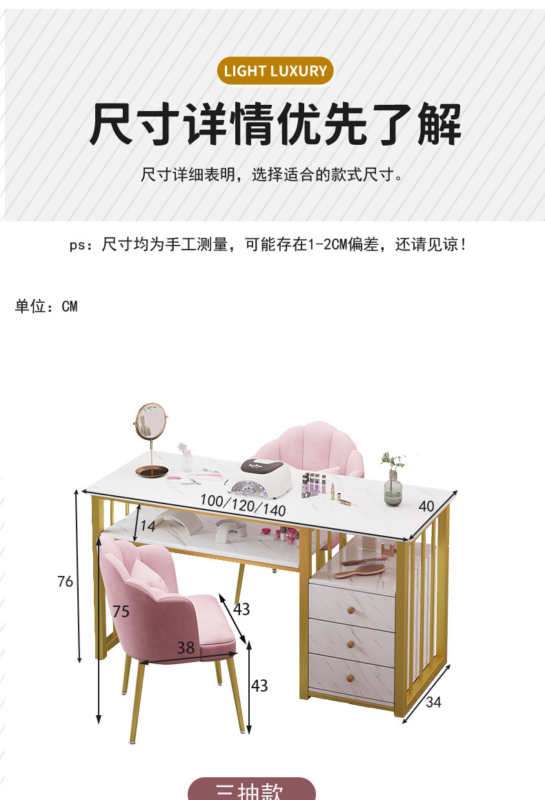 ネイルサロンネイルチェア長方形化粧テーブル小戸型少女心ins千鳥格二重ネイルテーブルセット