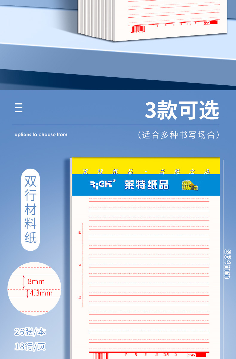 卸売り単行便箋二重線原稿用紙本横線原稿用紙400格作文紙入団申請書材料紙