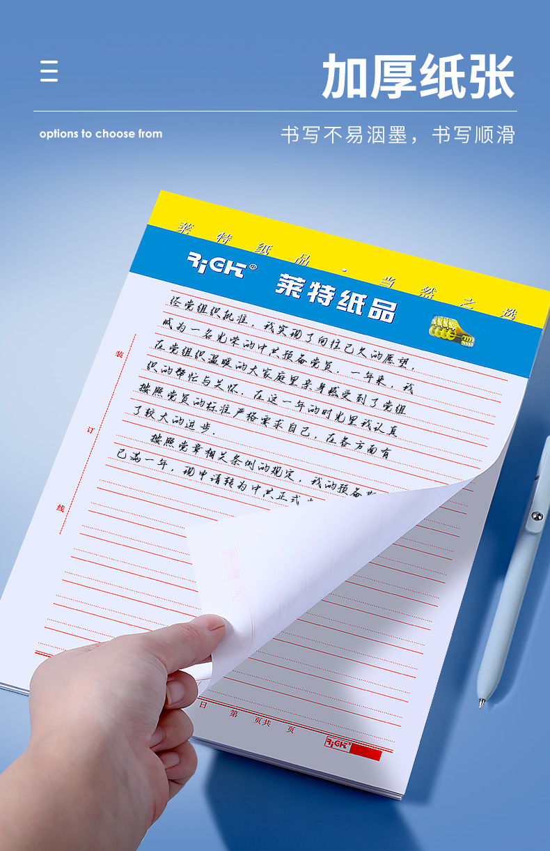 中国式16k大サイズの厚手の便箋の単線便箋の作文400字の入党申請書の手紙は学生の原稿用紙に署名します。