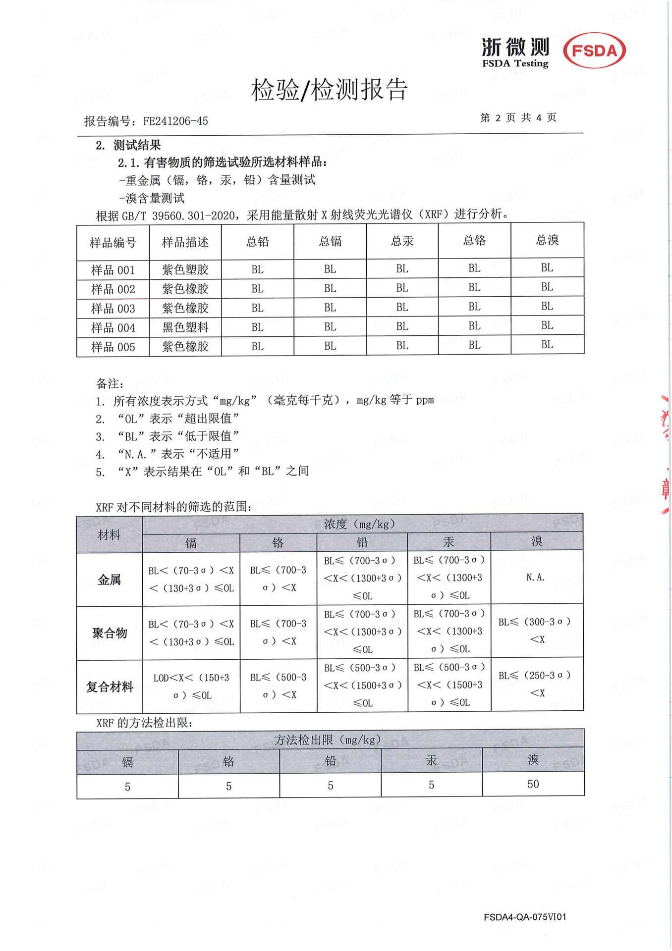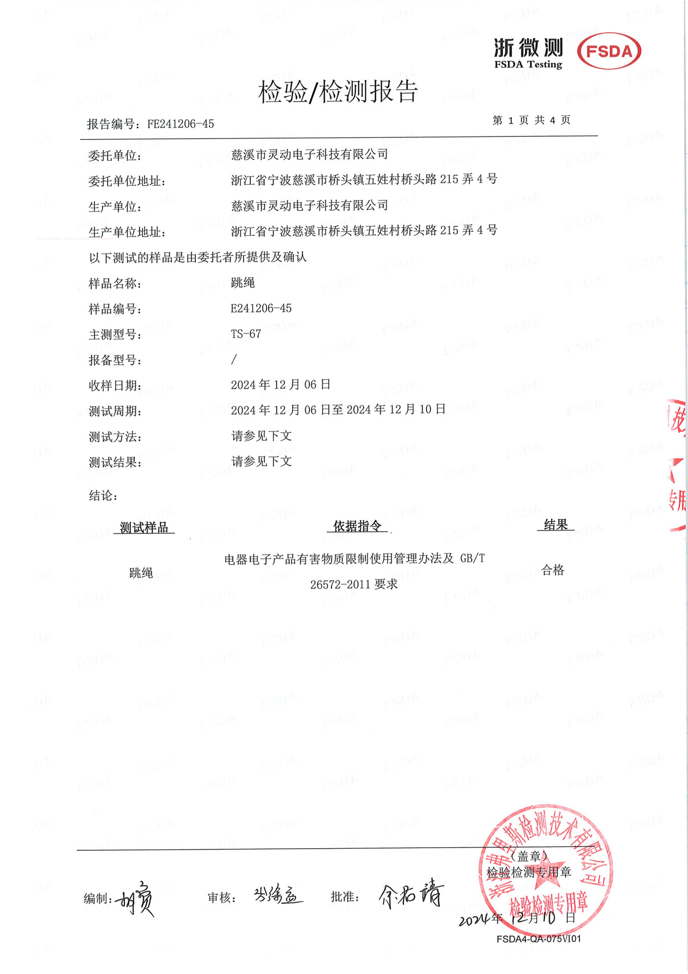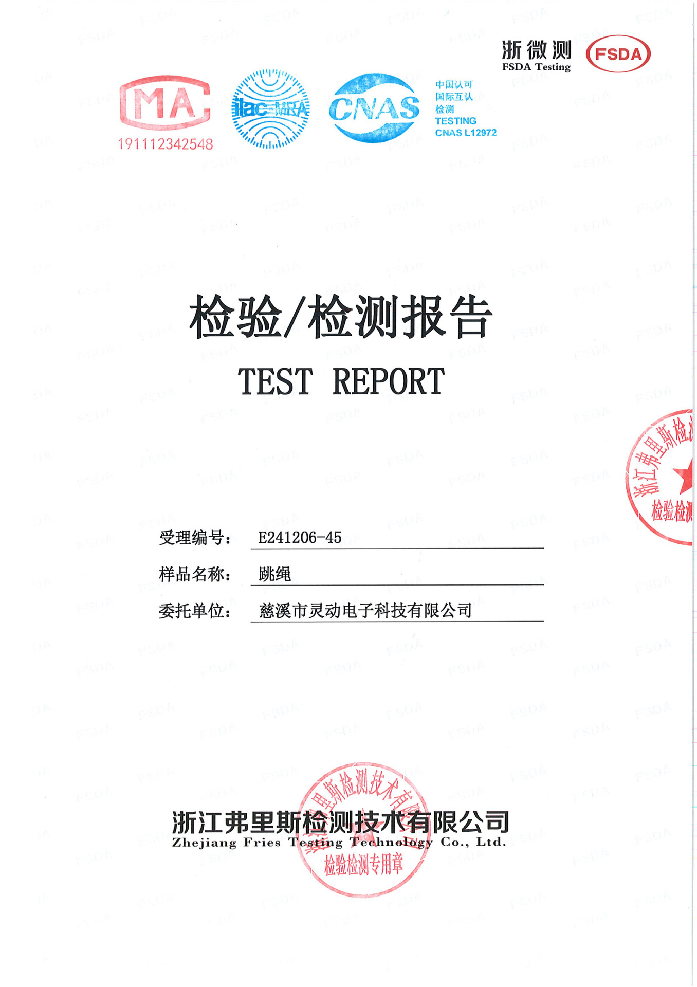 品質検査報告書番号