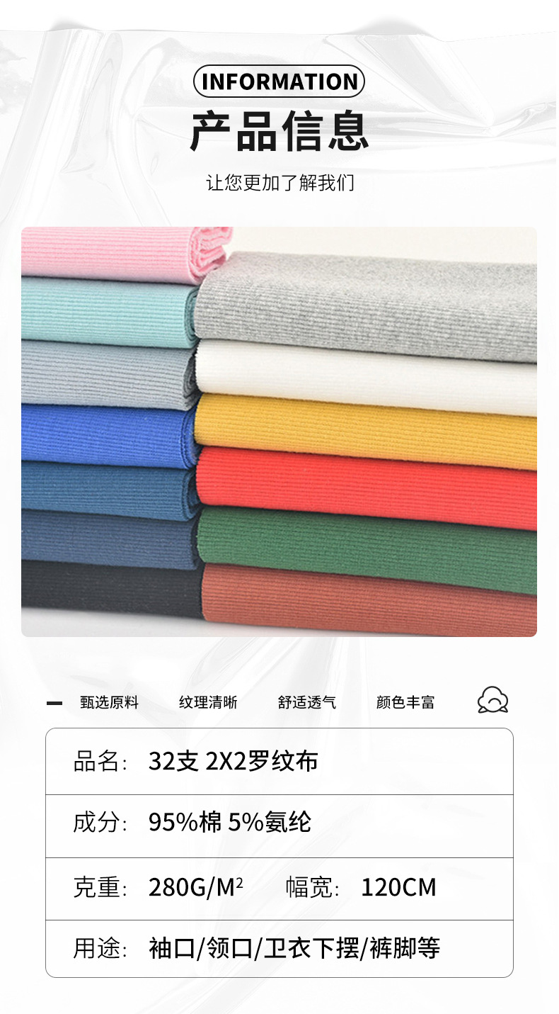 2*2 罗纹布 棉弹针织面料 弹力修身 服装领口袖口专用布料现货