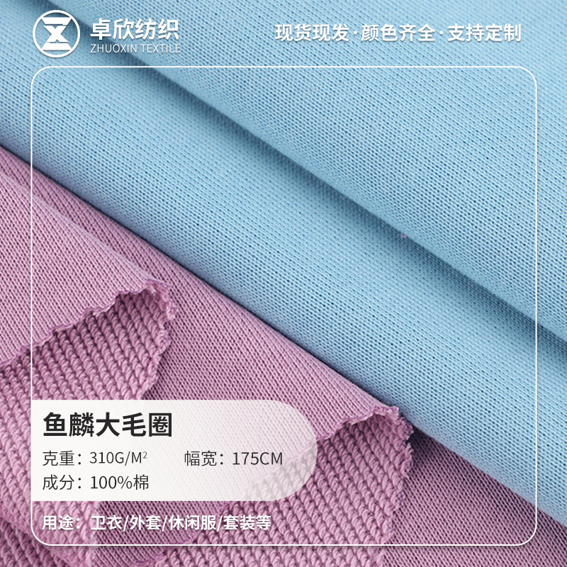 32S全綿魚鱗大毛輪衛衣生地秋冬衛衣カジュアル服セット毛輪ニット生地