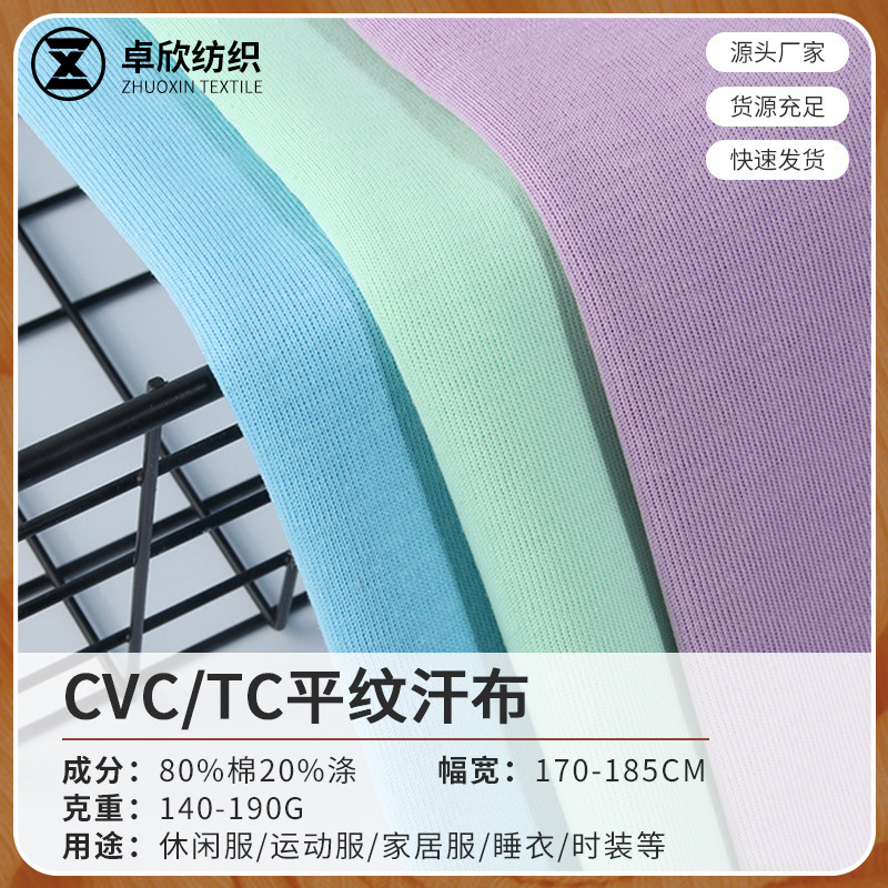 現物32s本CVCポリエステル綿片面平織りジャージー春夏ニットカジュアルtシャツtcジャージー生地