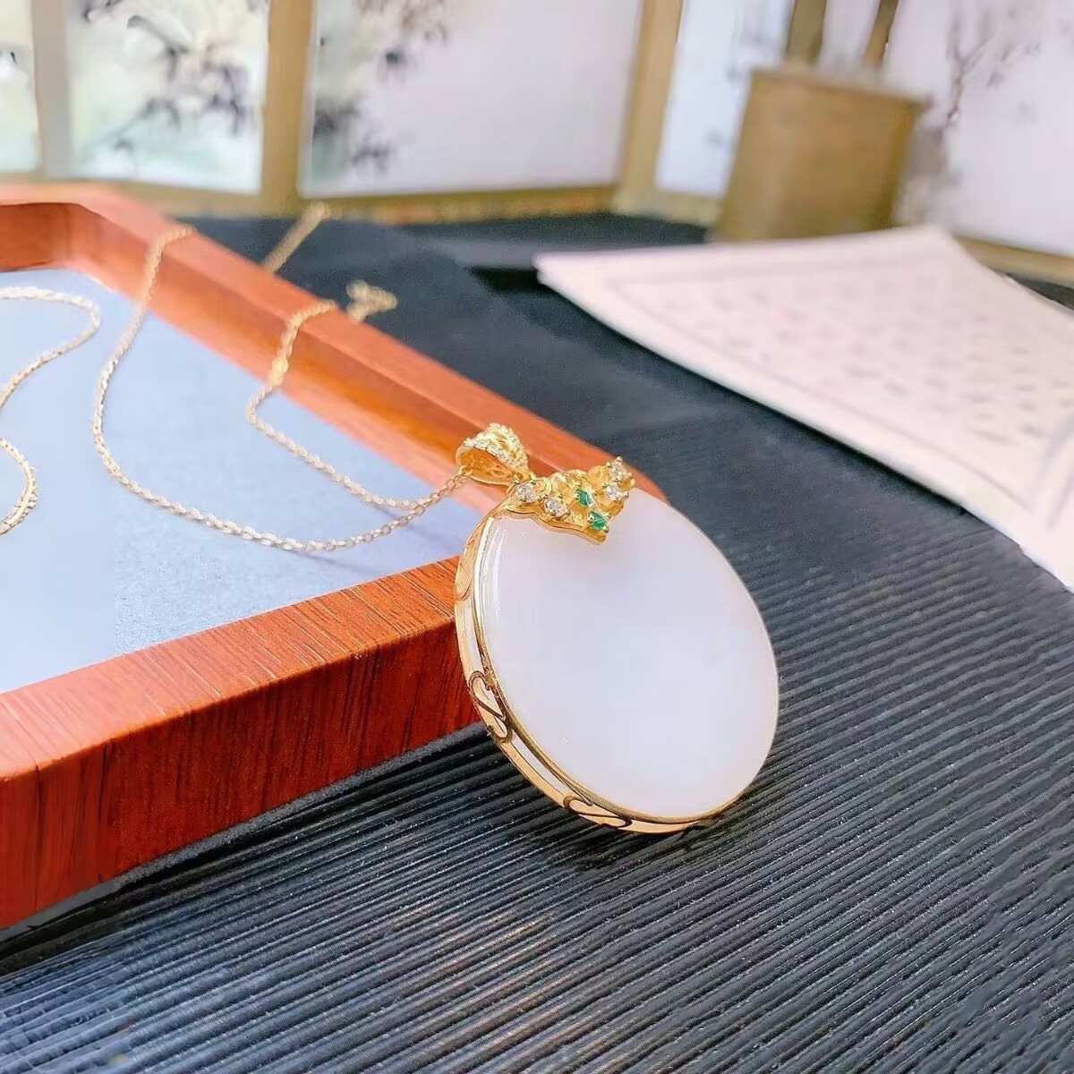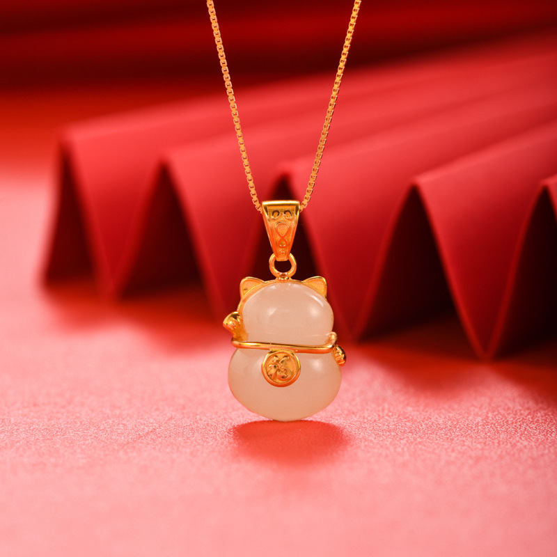 生中継ソースs925純銀モザイク天然和田玉招き猫福字ペンダントネックレスアクセサリーペンダント卸売り