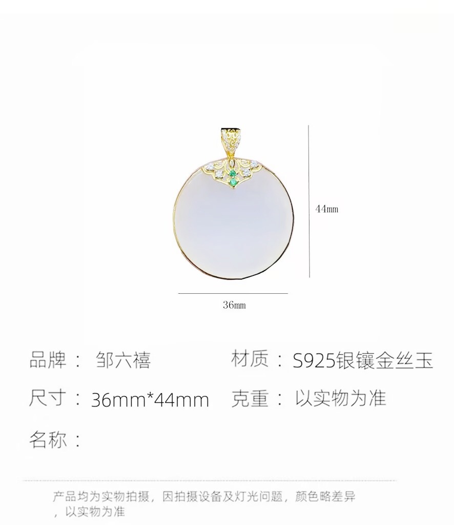 S925銀は天然金糸玉の丸いブランドのレトロなペンダントをはめ込んでいます。