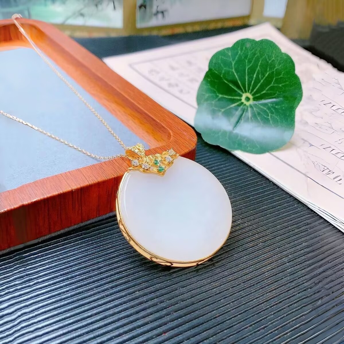 天然アフリカエメラルドゴールデンブランチと翡翠の葉ペンダントネックレス S925 シルバー象嵌ファッションリーフペンダントライブブロードキャスト供給クロスボーダー