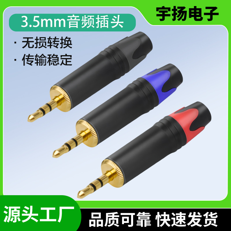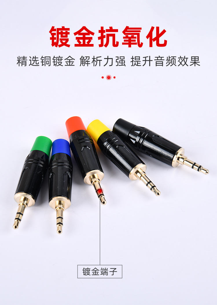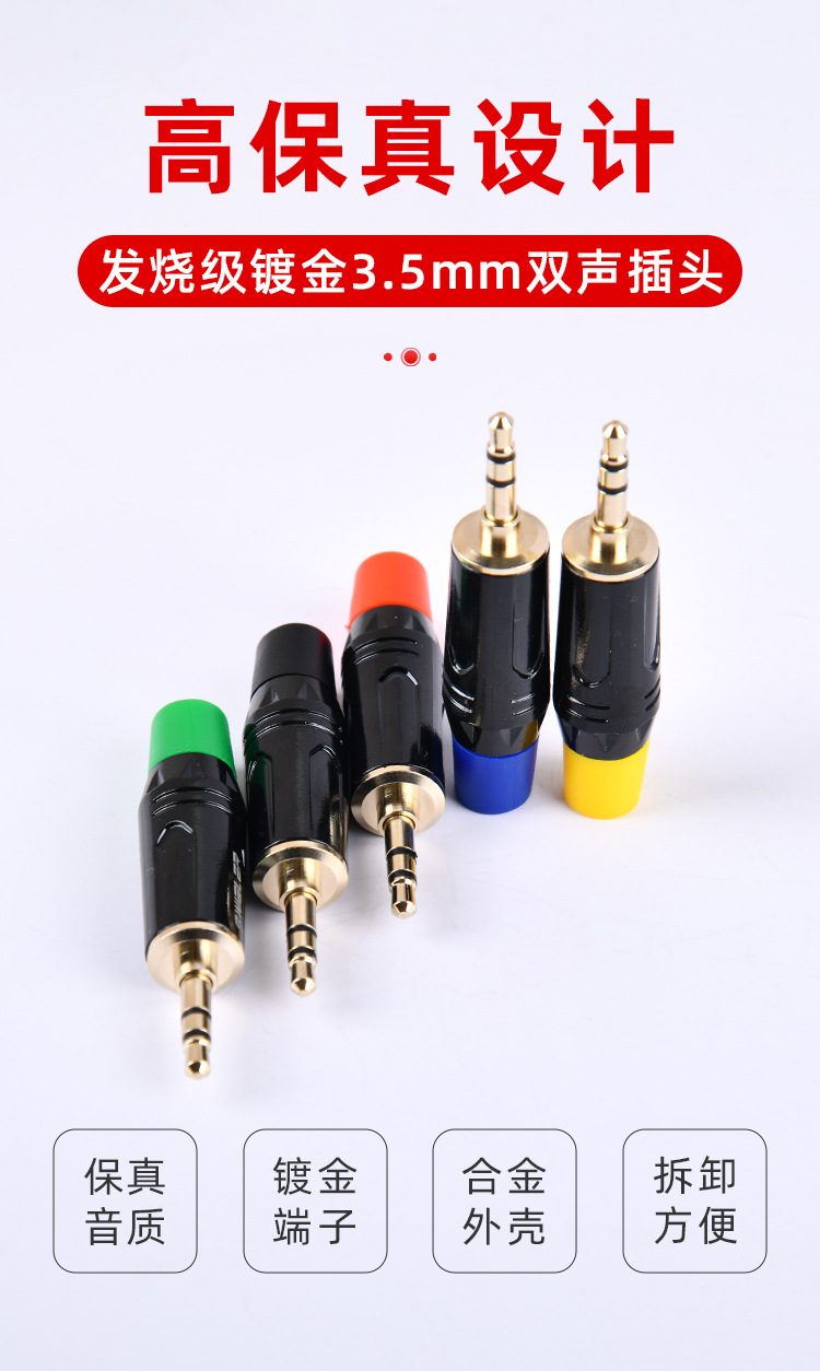 金メッキ3.5mm公オーディオプラグイヤホンアンプ調音台溶接ヘッドセット2チャンネルステレオ小三芯カラー