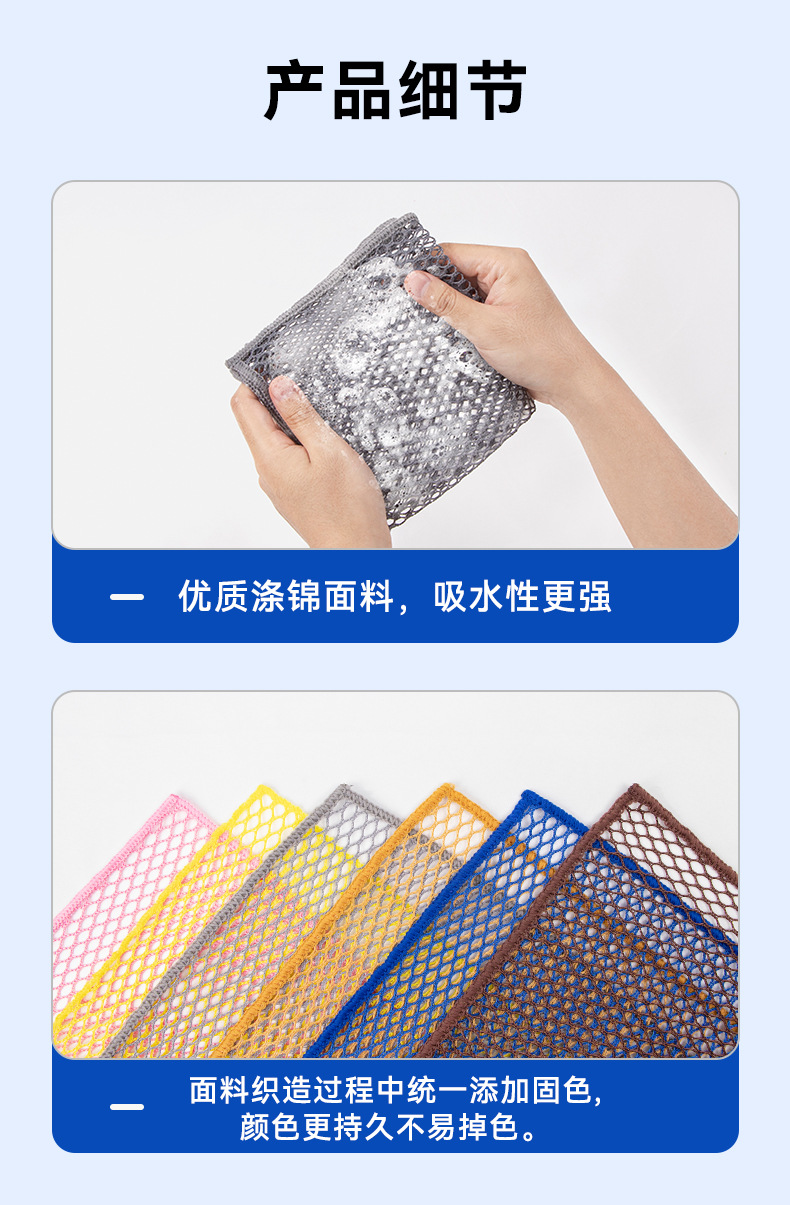 3D网眼清洁洗碗布易起泡可代替钢丝球洗锅刷碗多用途清洁网格抹布