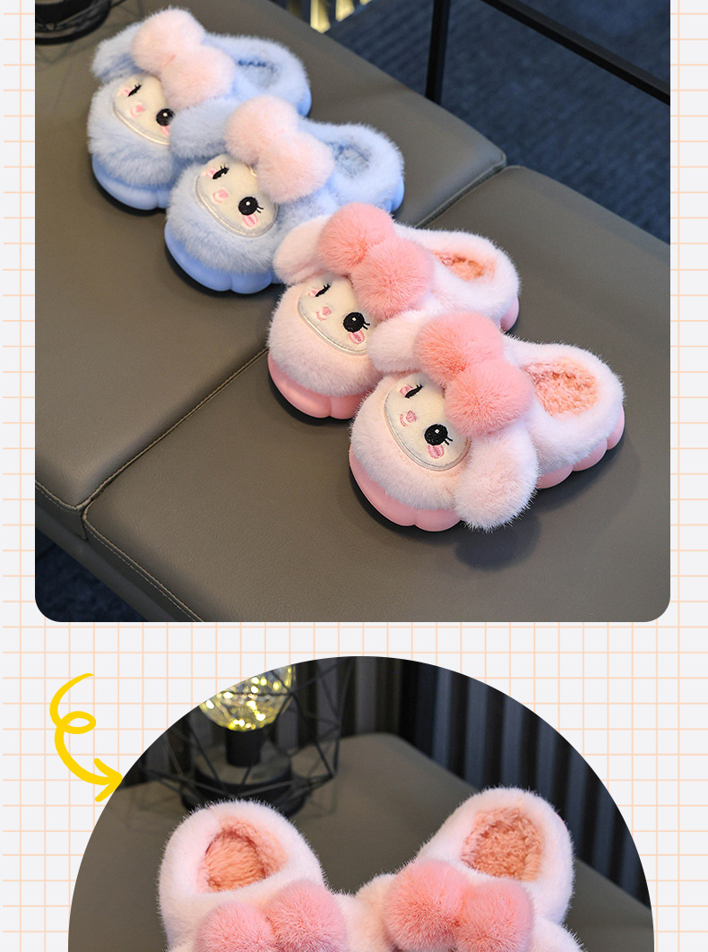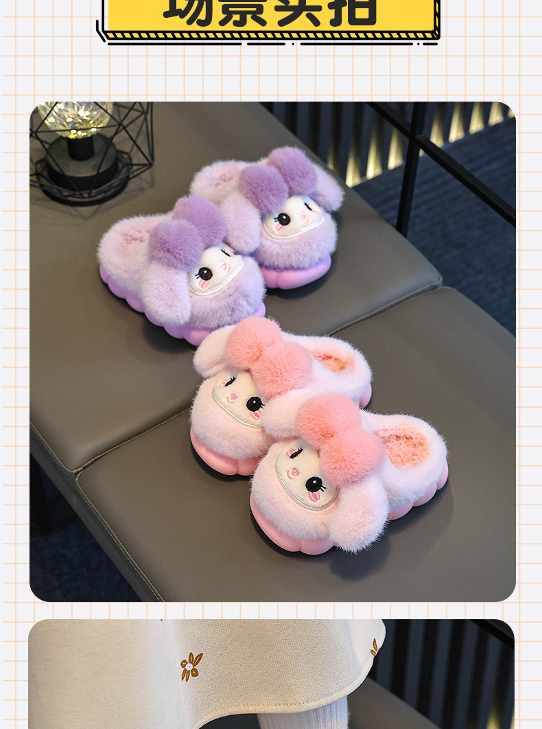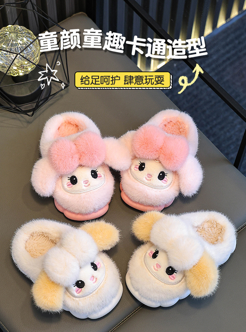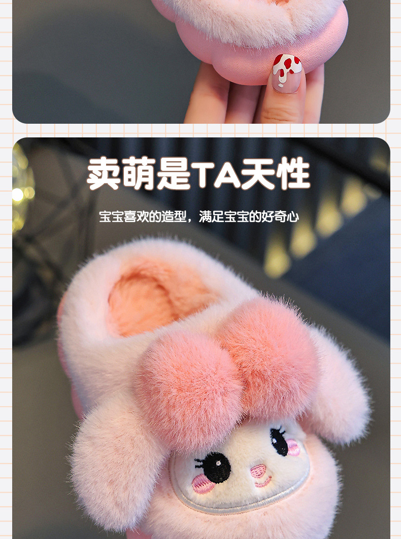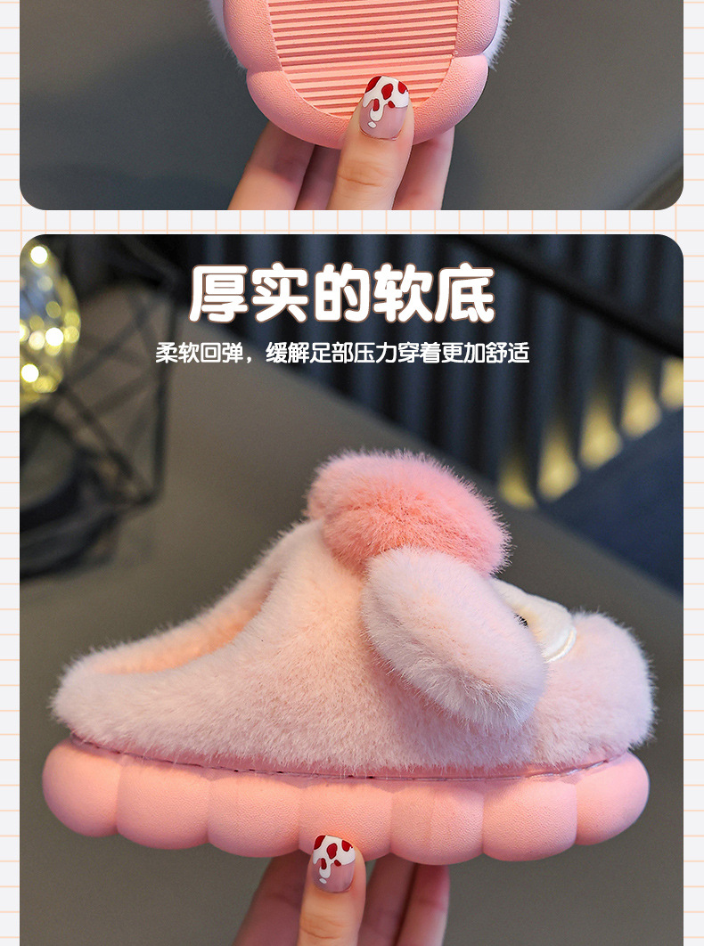 冬季儿童棉拖鞋女童可爱保暖加绒兔子毛毛居家男童防滑宝宝棉拖鞋