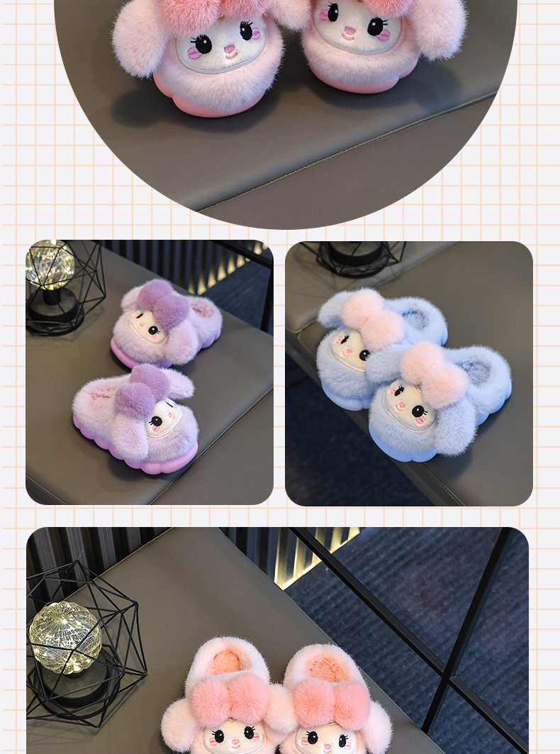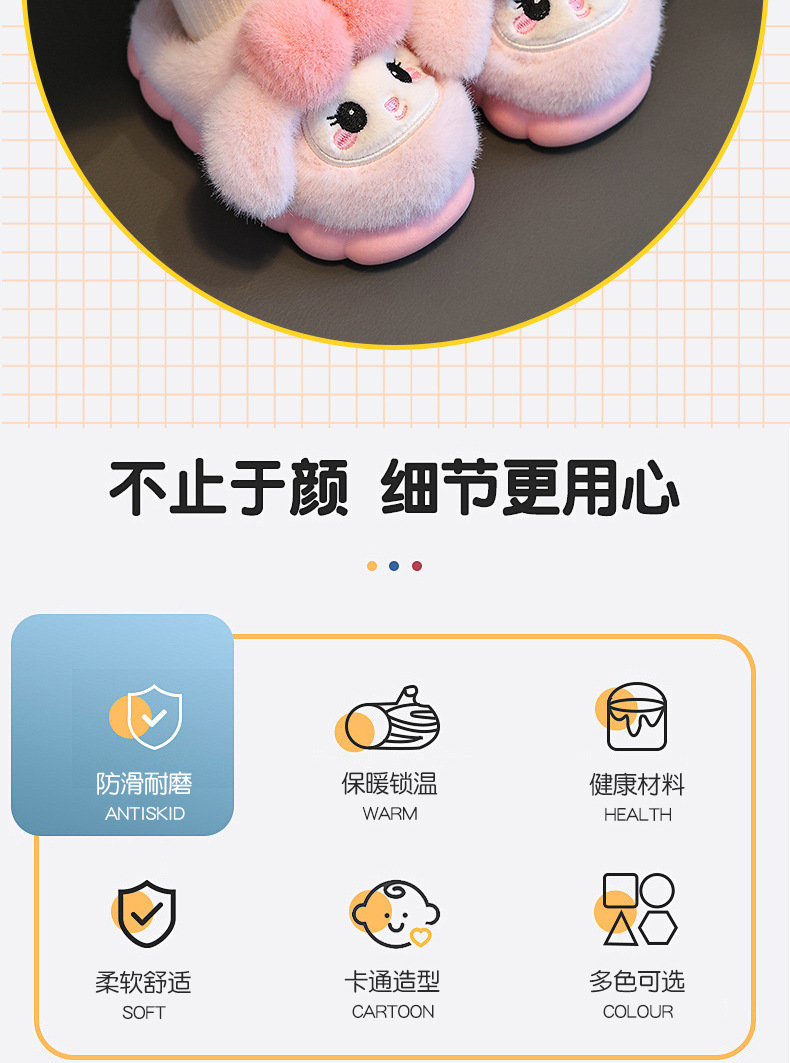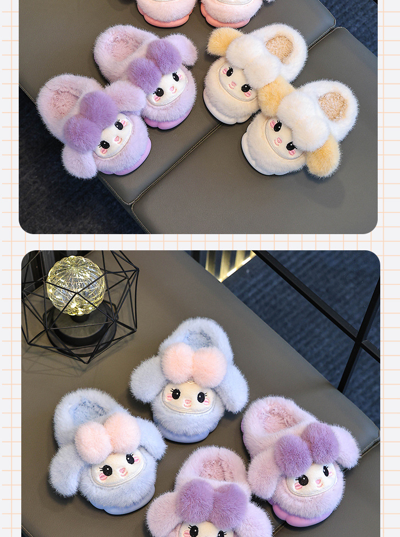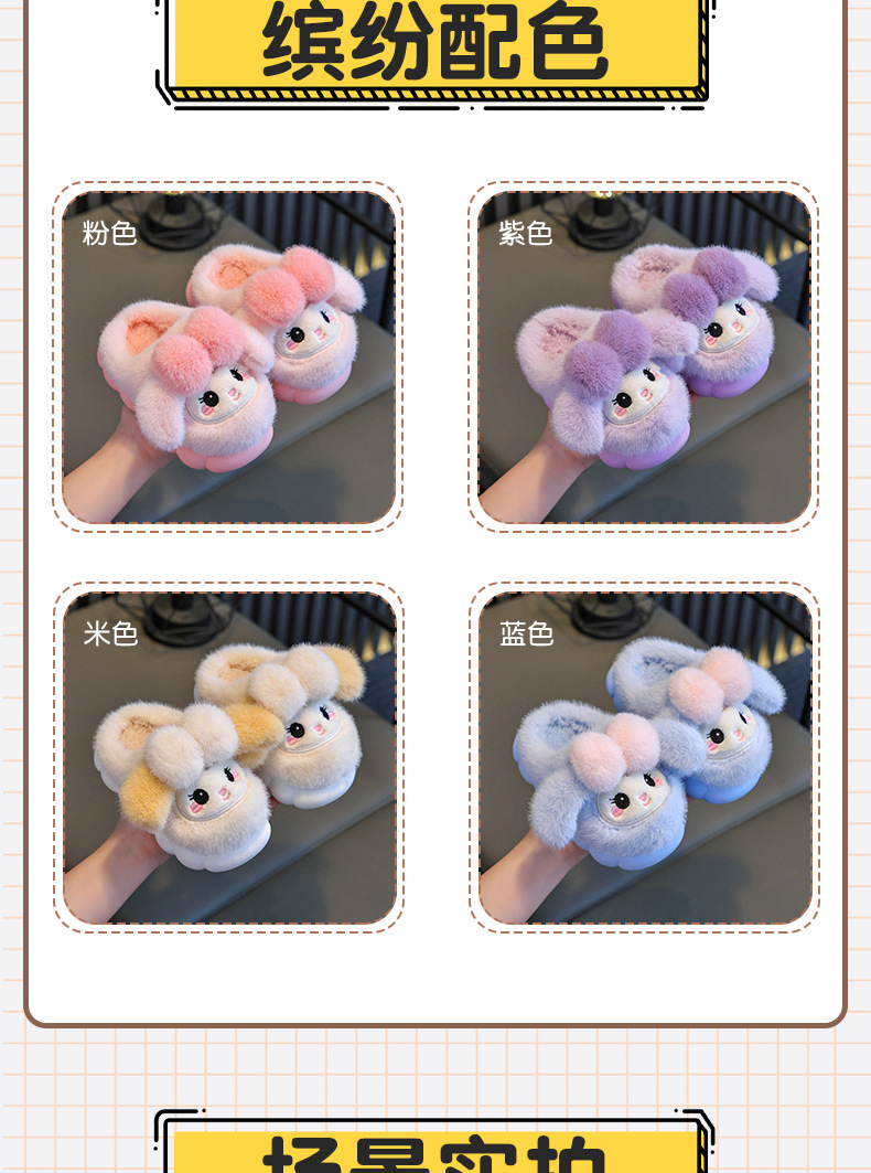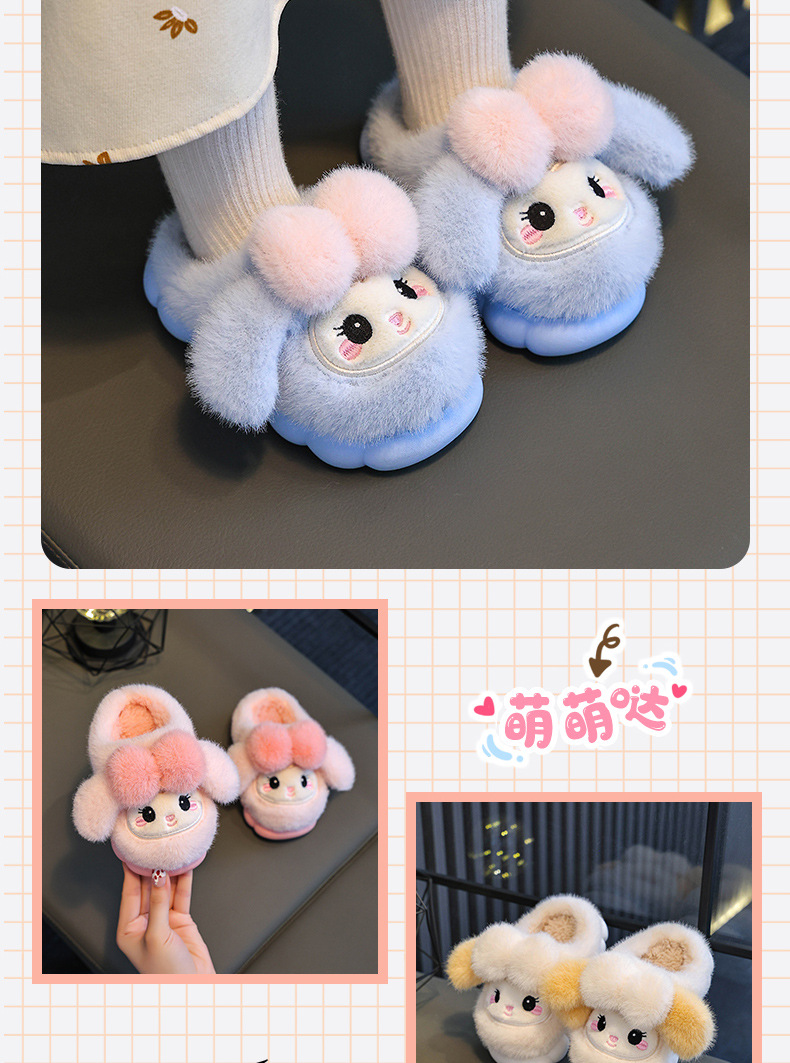 冬季儿童棉拖鞋女童可爱保暖加绒兔子毛毛居家男童防滑宝宝棉拖鞋