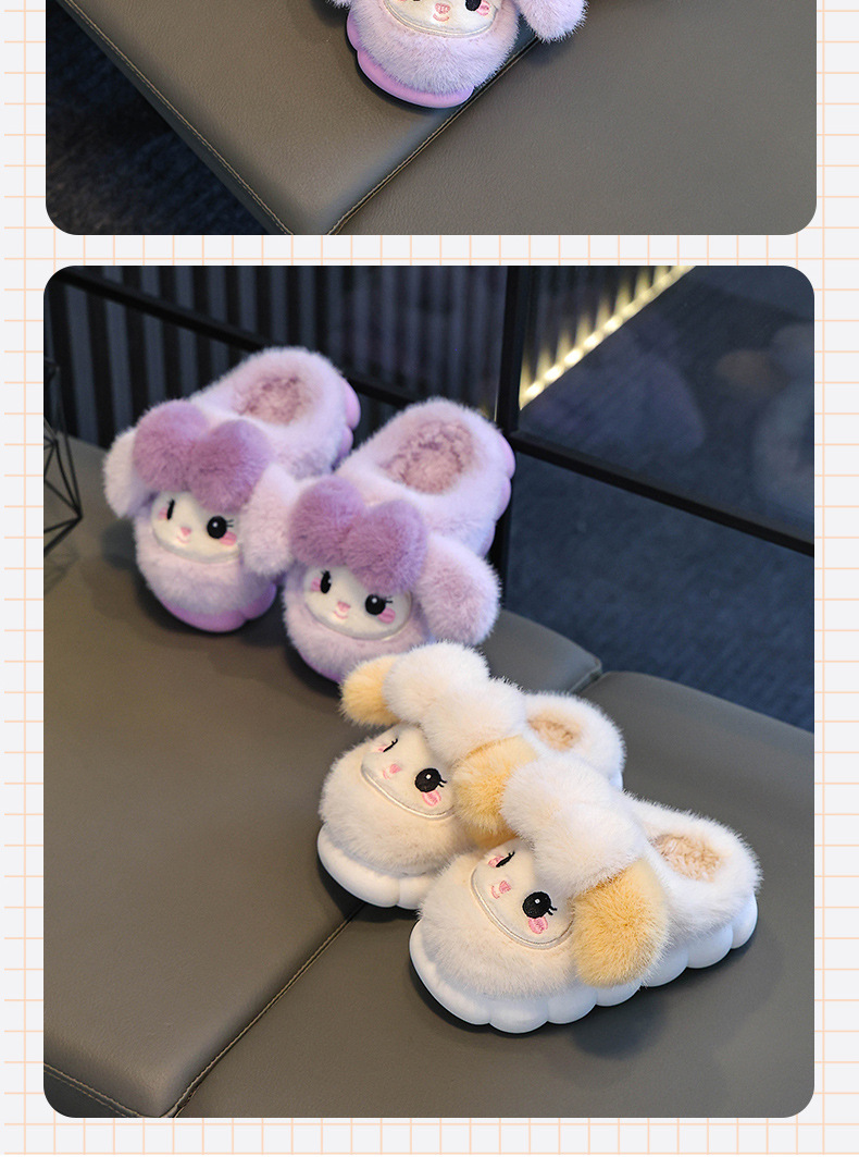 2025冬季女童棉拖鞋可爱女孩雪莉玫公主拖鞋室内保暖宝宝棉拖潮流