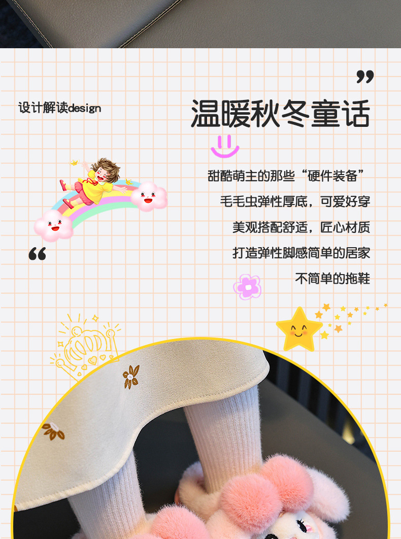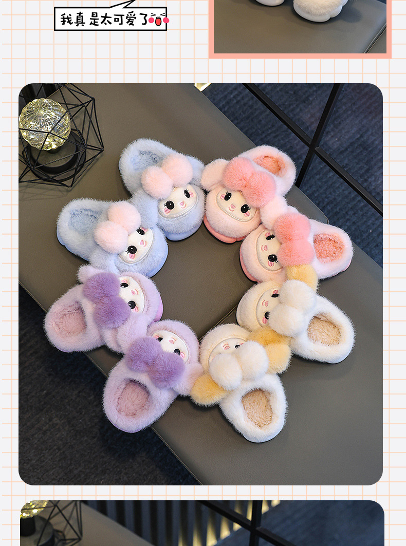 新款儿童棉拖鞋秋冬季女童卡通室内毛毛鞋中小童保暖公主棉鞋