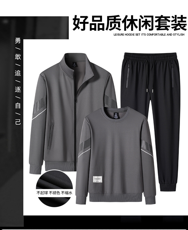 团购批发三件套男士运动休闲套装秋冬款纯色加大码卫衣裤子男装