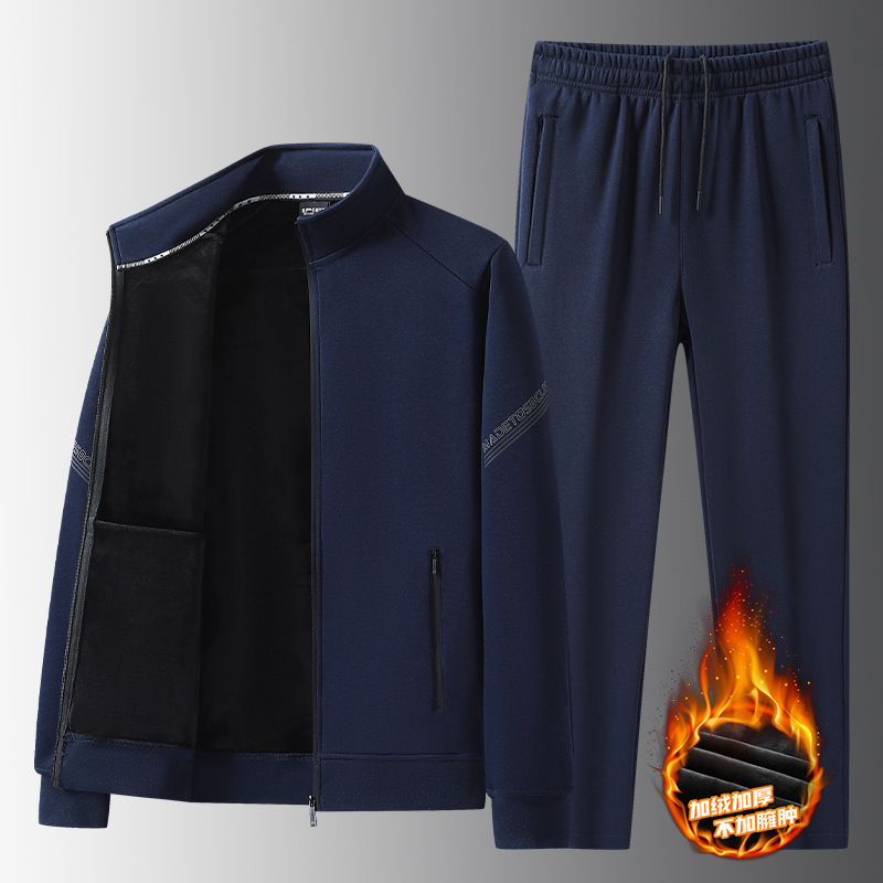 爆款中老年运动套装男士冬季棉加厚银狐绒加肥加大码开衫休闲加绒