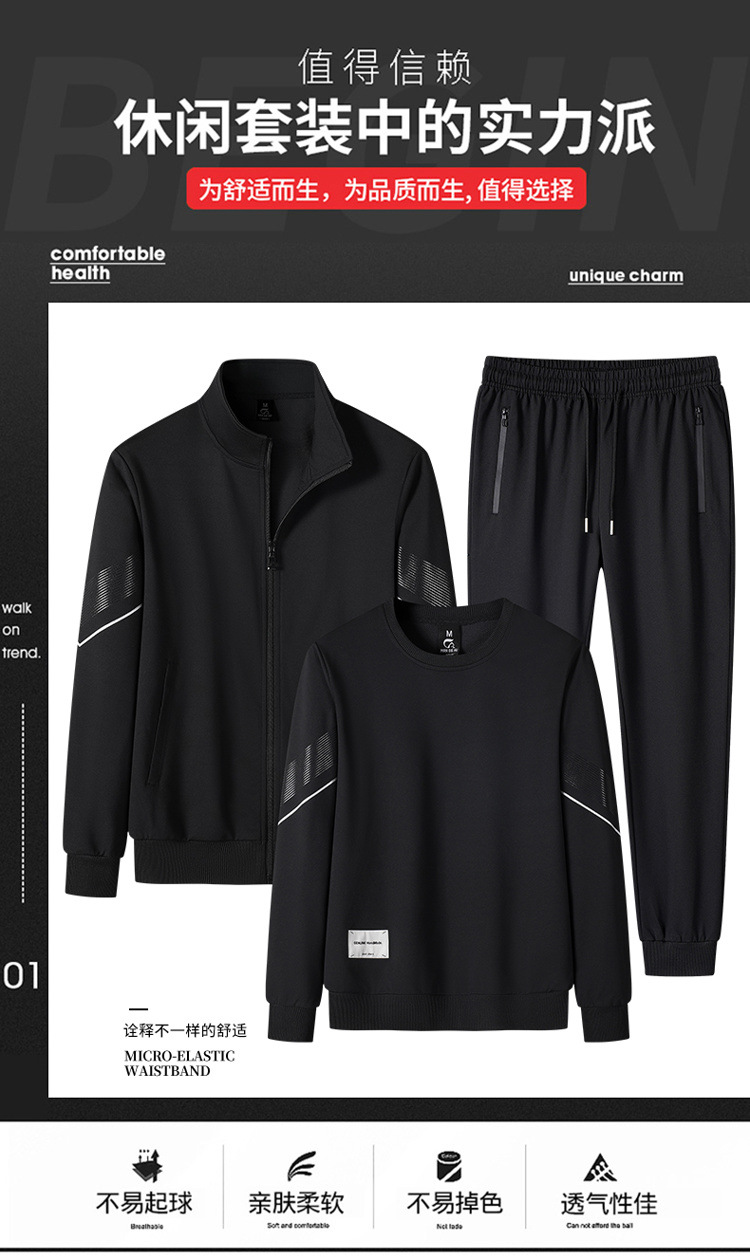 スポーツスーツ春秋加肥プラスサイズカジュアルコート男性デブゆるい中高年スウェット3点セット