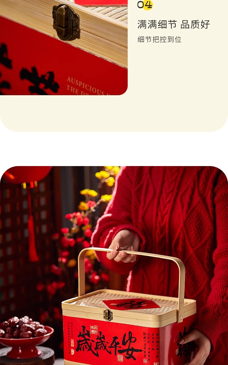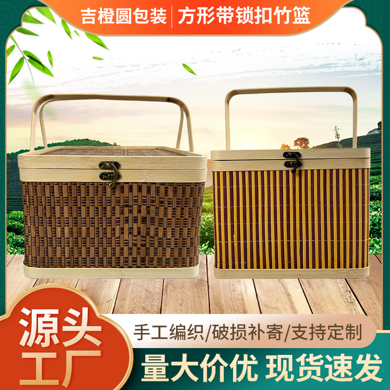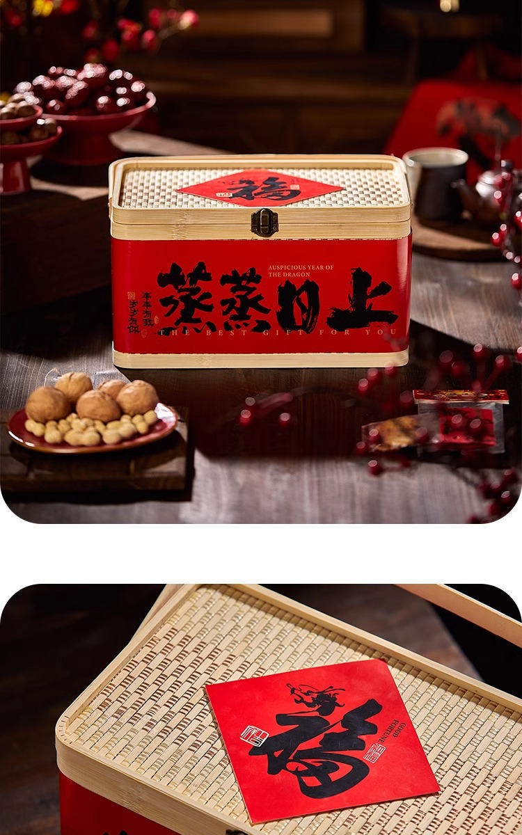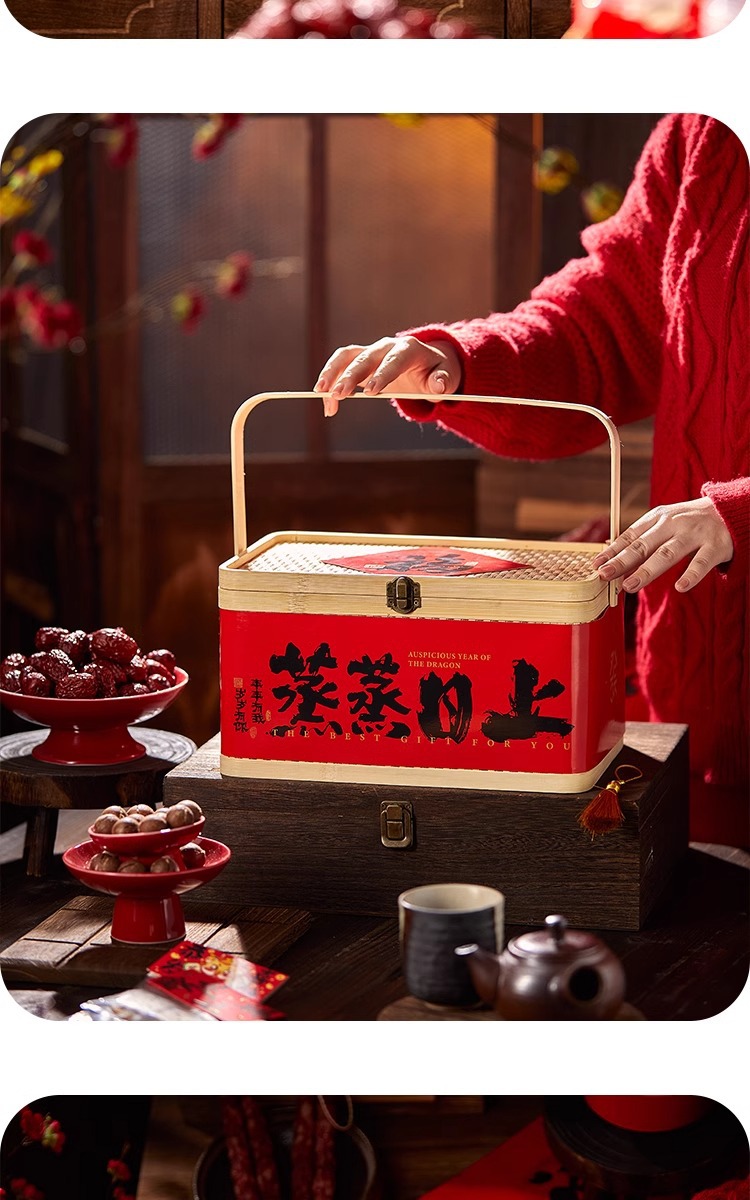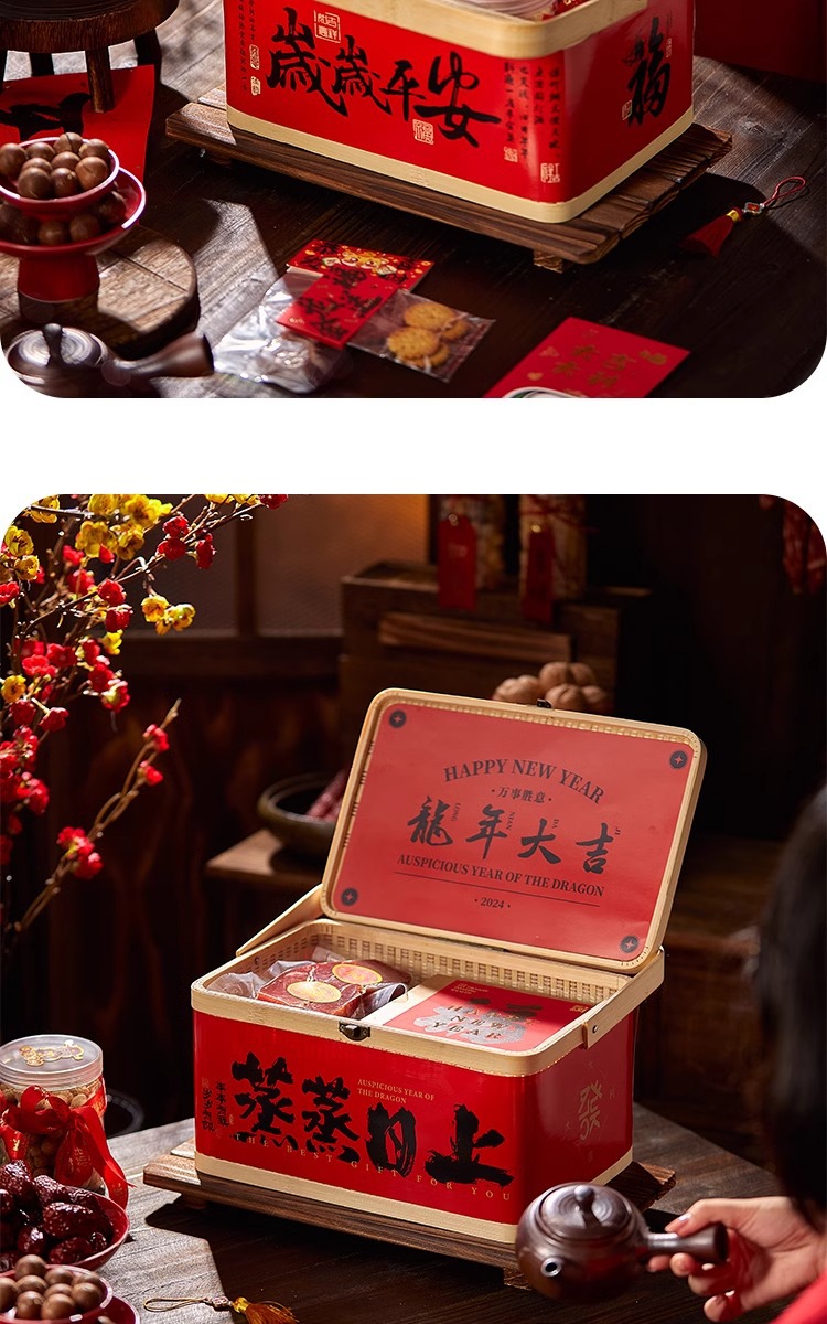 2025年新商品ギフトボックス包装クッキーナッツ乾物菓子辰年国風竹製提籠汎用竹編みギフトボックス