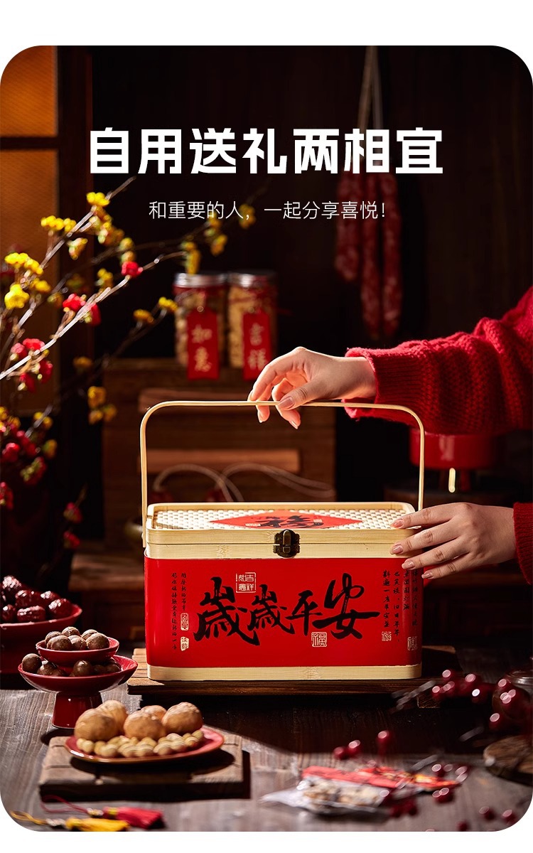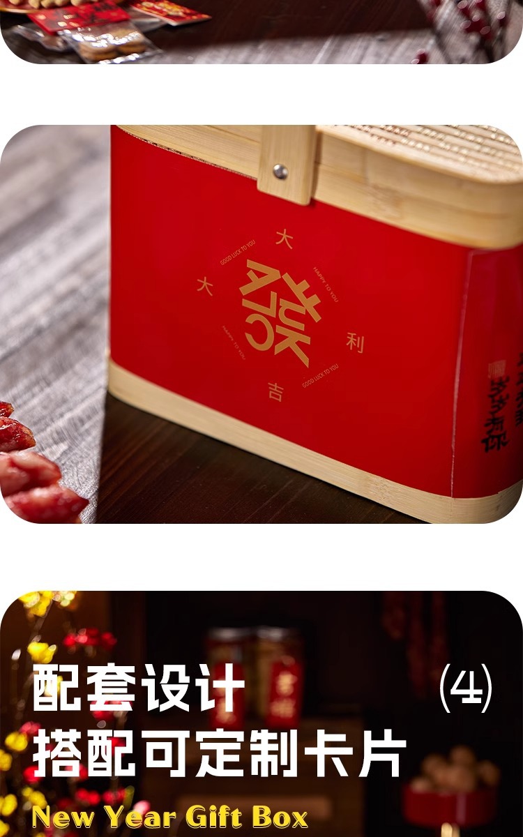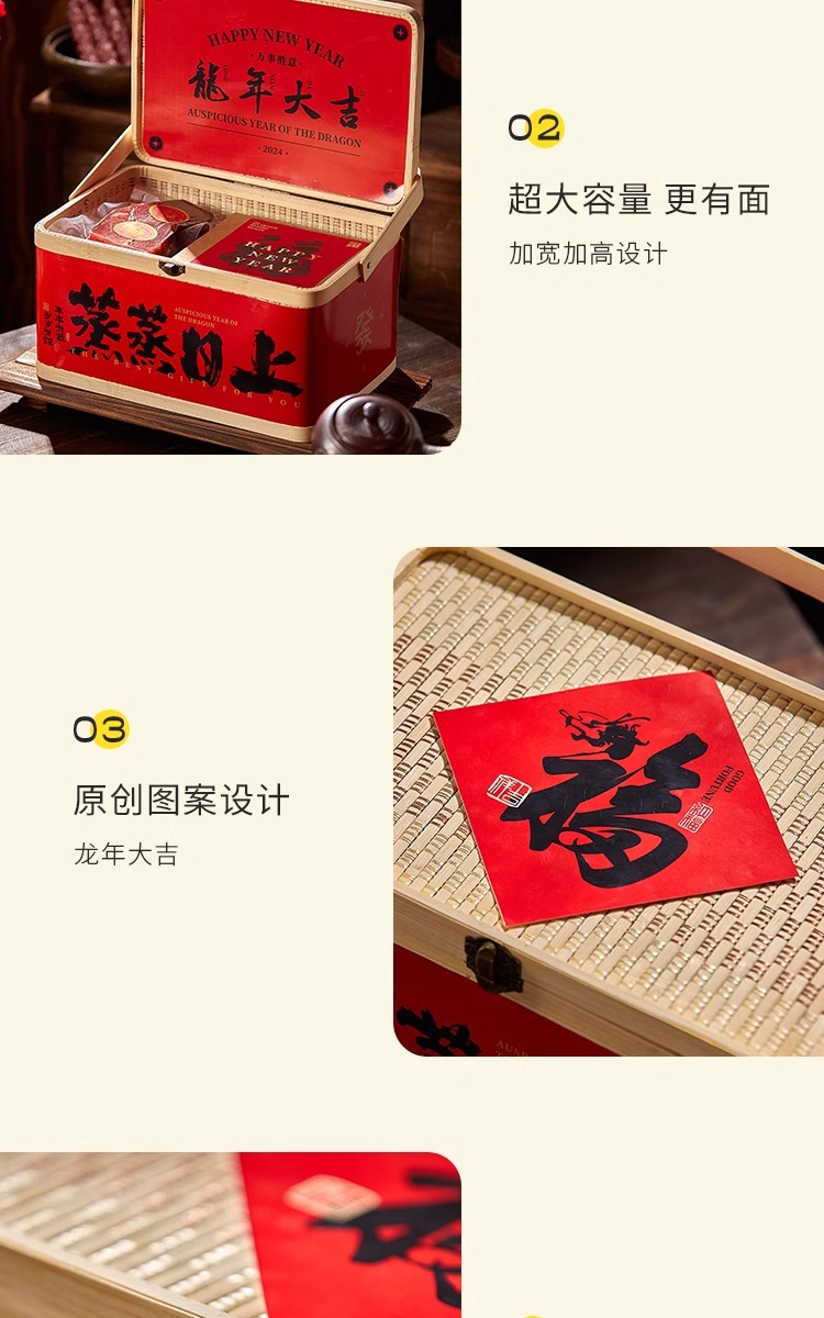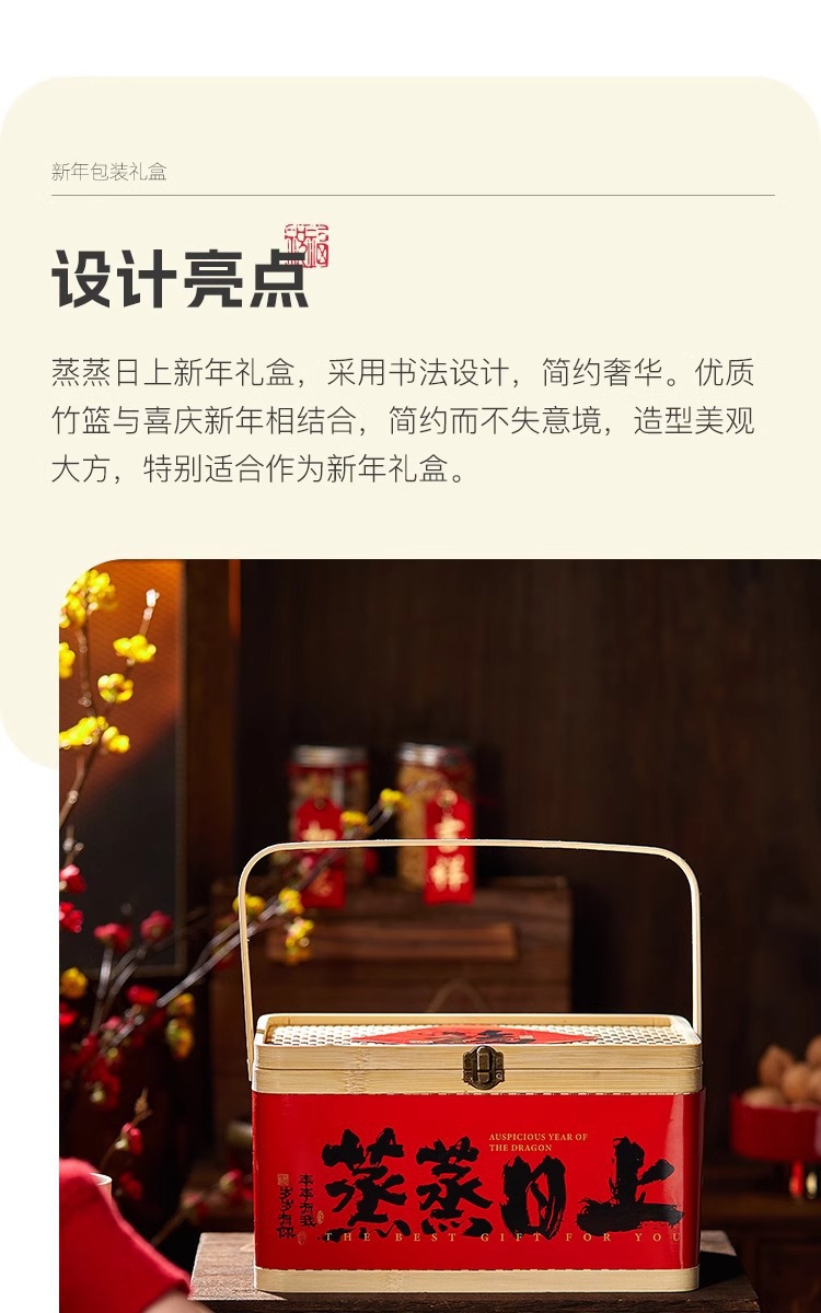 2025年新商品ギフトボックス包装クッキーナッツ乾物菓子辰年国風竹製提籠汎用竹編みギフトボックス