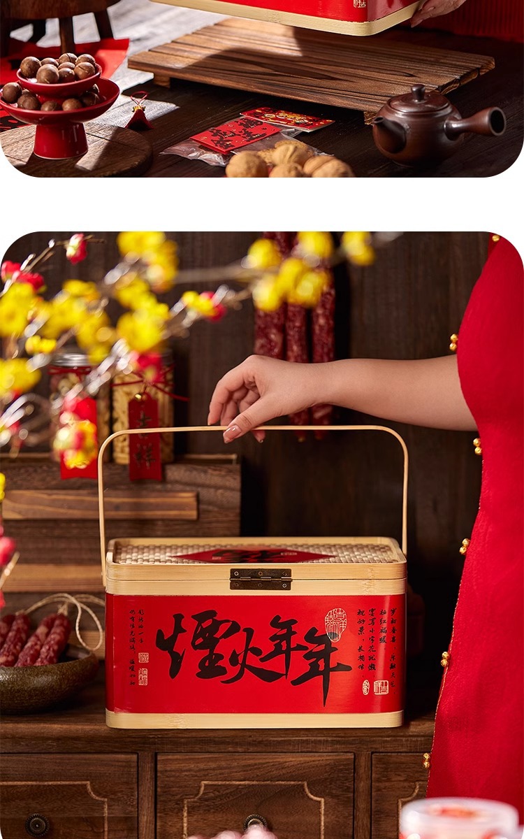 新年手提げ二重竹編みギフトボックス年物旧正月手提げバスケットお土産ナッツ乾燥品ベーコンギフトボックス