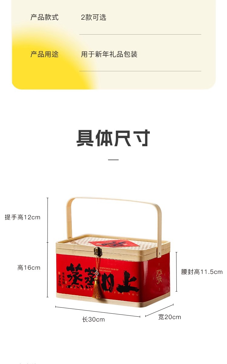 现货2026新年竹编篮子蛇礼盒包装竹篮子蒸蒸日上春节特产手提竹篮