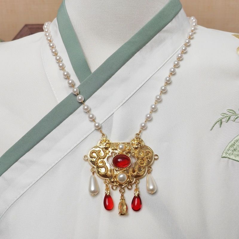 明代風漢服雲肩流蘇古装旗袍アクセサリー民族風手作り織り中国風パールショール