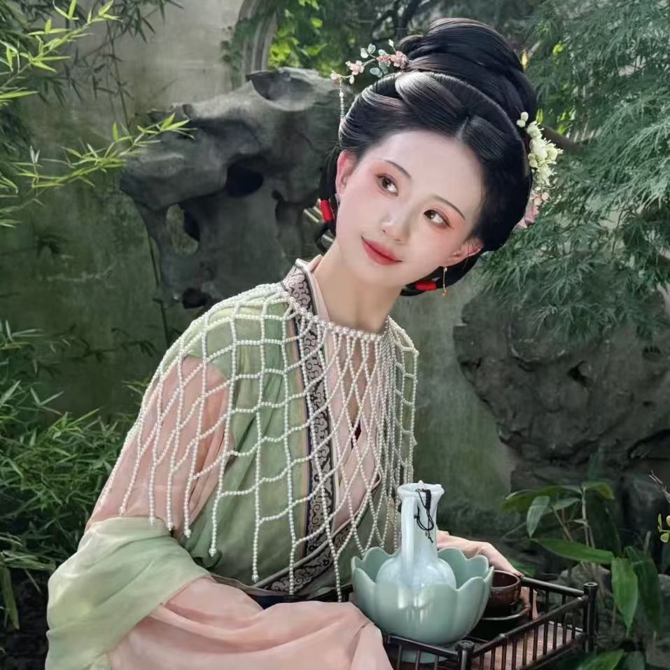 国風漢服のストールは手で真珠の雲の肩を編みます。
