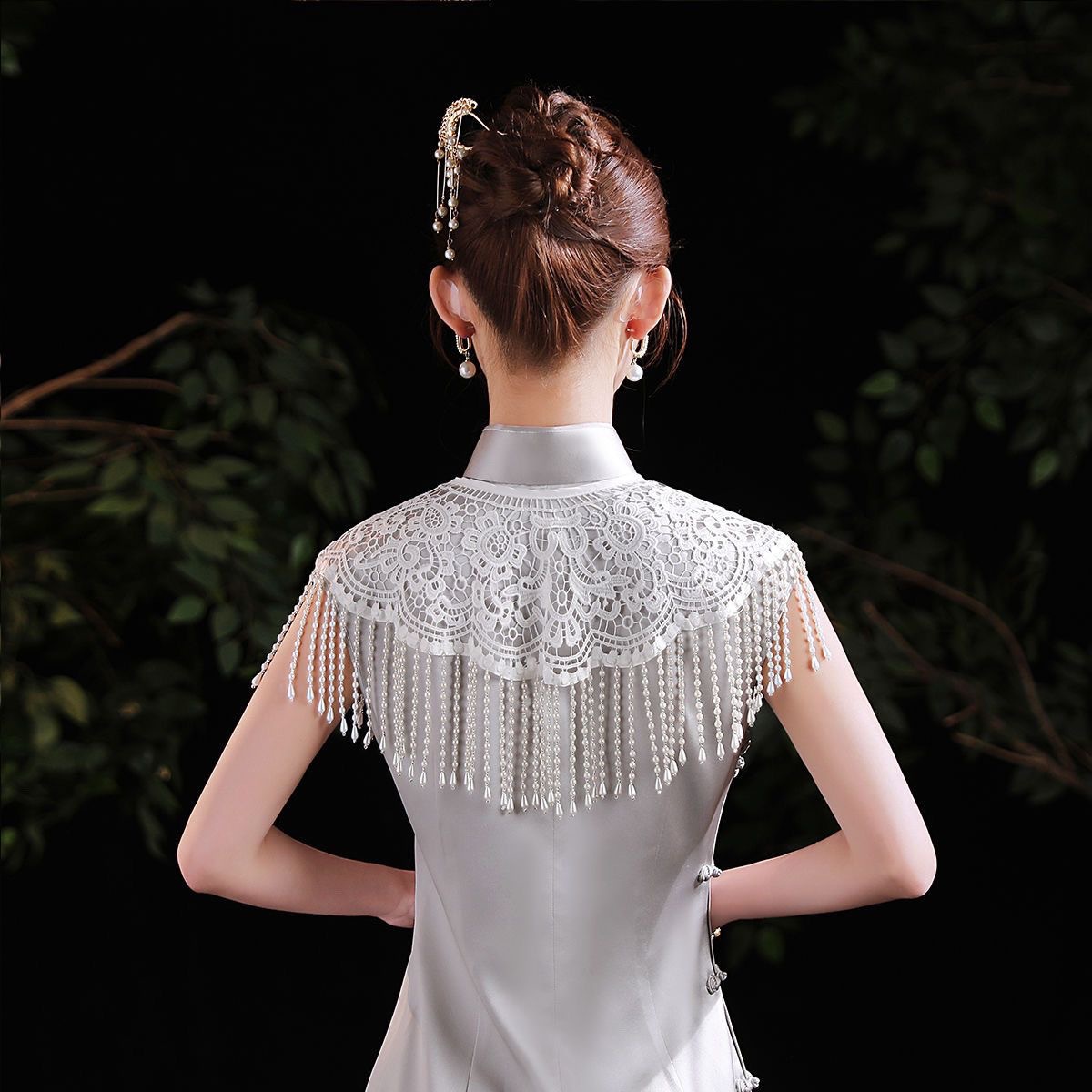 新中式百搭旗袍敬酒披肩新款复古国风港风气质泪珠吊坠披肩