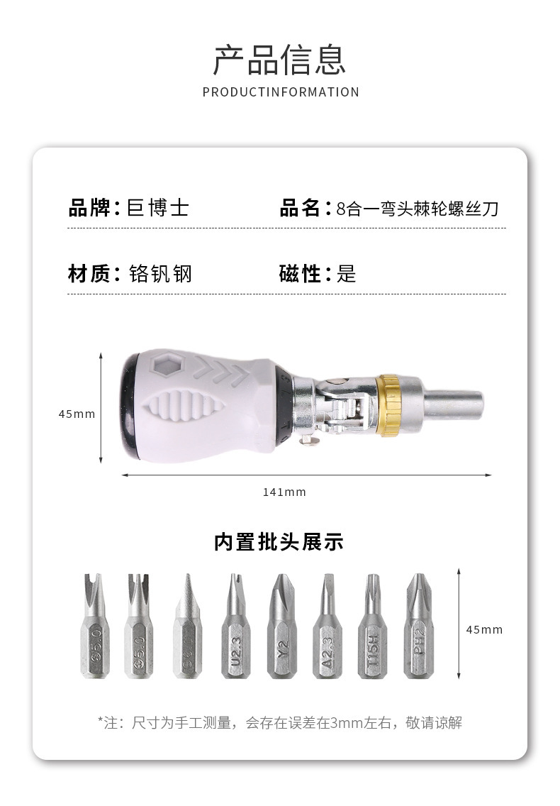 7合1工業級小鋼砲ドライバーセットアルミニウム合金十字一字多機能多機能ヘッド高硬度