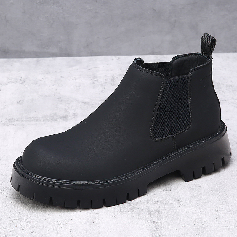 英伦风牛皮切尔西短靴男套脚马丁靴厚底高帮百搭烟筒靴机车工装鞋