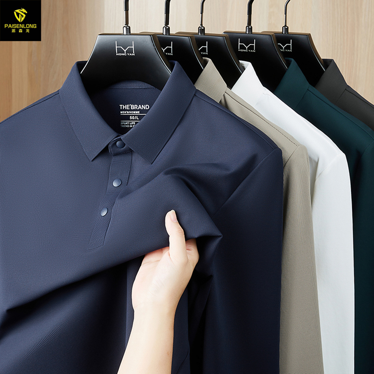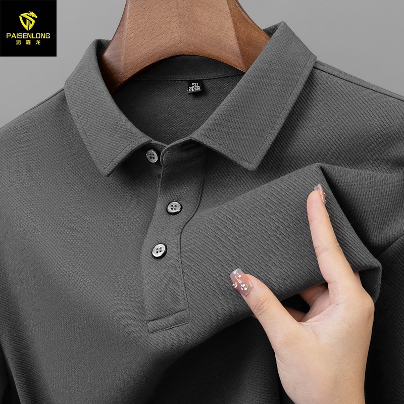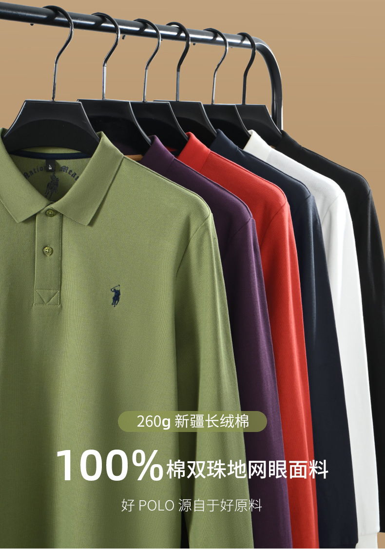 派森龍秋冬襟開きパンツ男poloシャツ100% 新疆長毛綿男性poloシャツ上着底シャツ