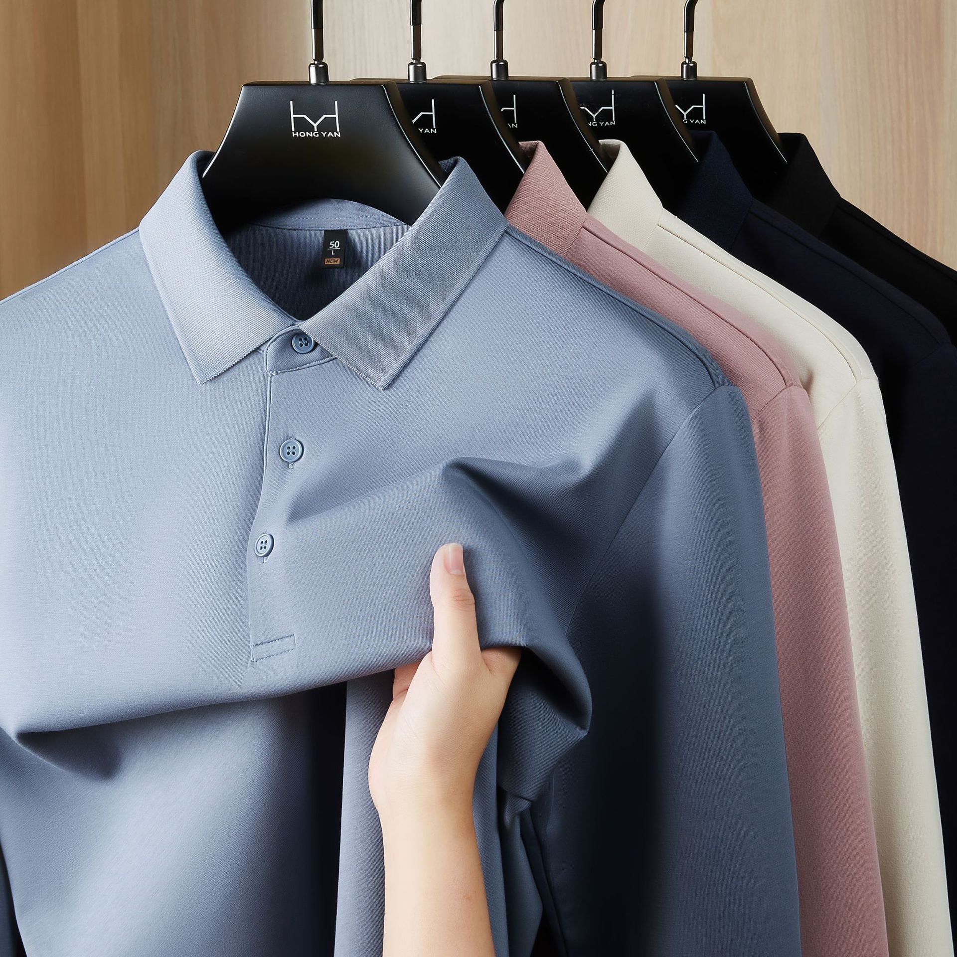 男士长袖t恤翻领中年简约休闲时尚男装高档秋春季新款全棉polo衫