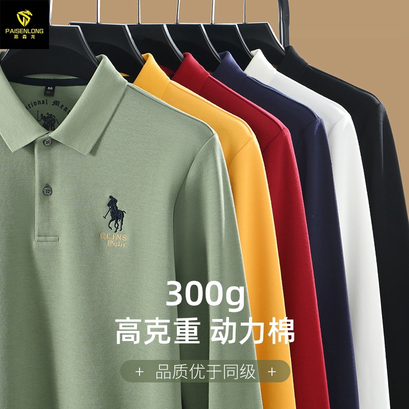 派森龙秋冬加厚款长袖翻领男polo衫300g动力棉轻商务刺绣男士POLO