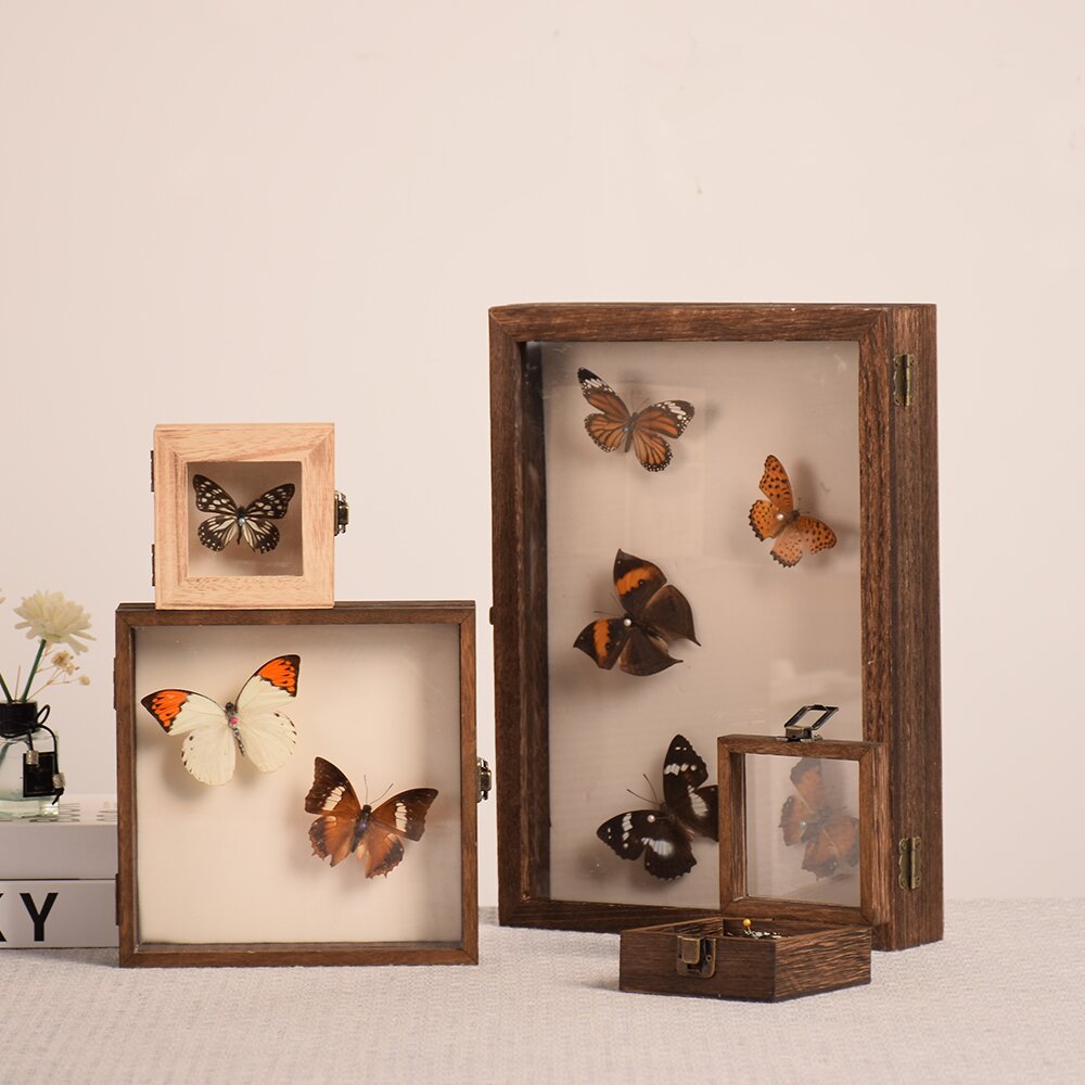 現物草花昆虫蝶標本展示箱木箱アクリル蓋蝶長方形箱防塵収納