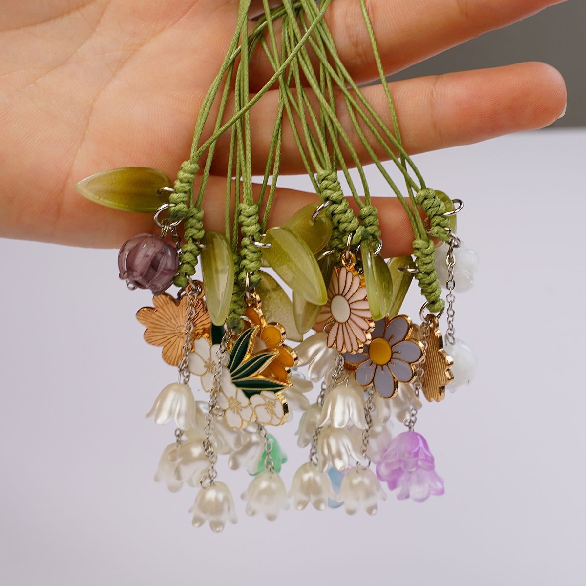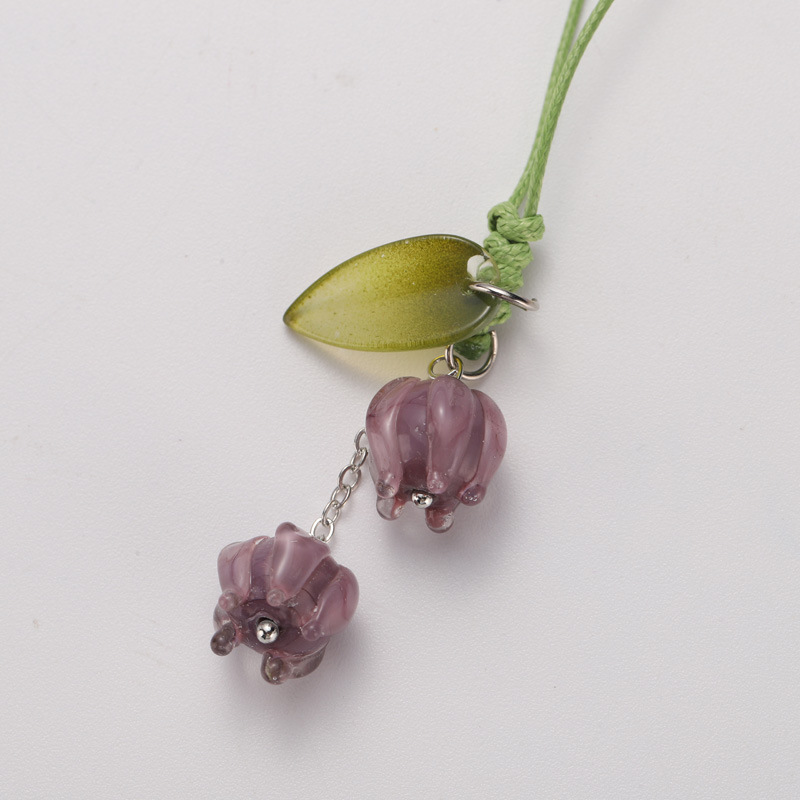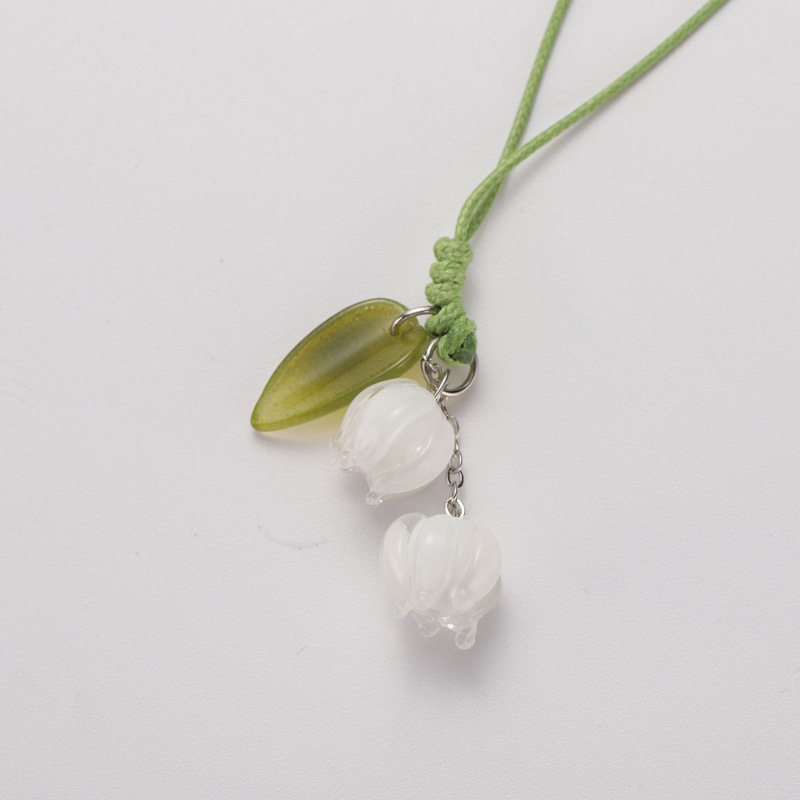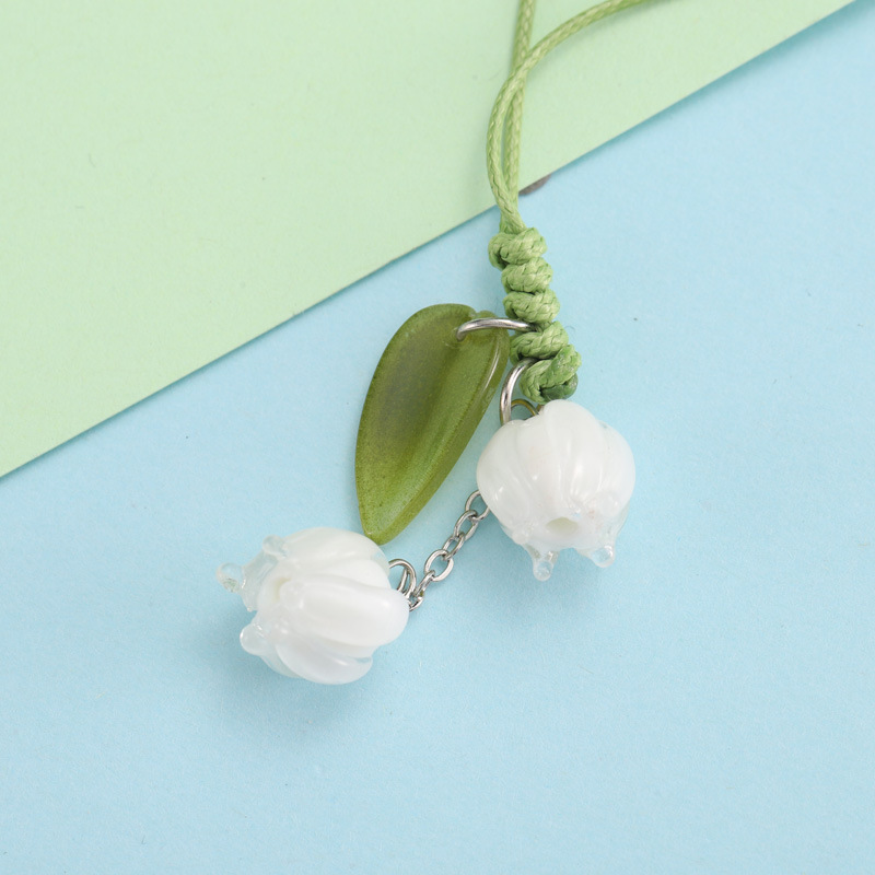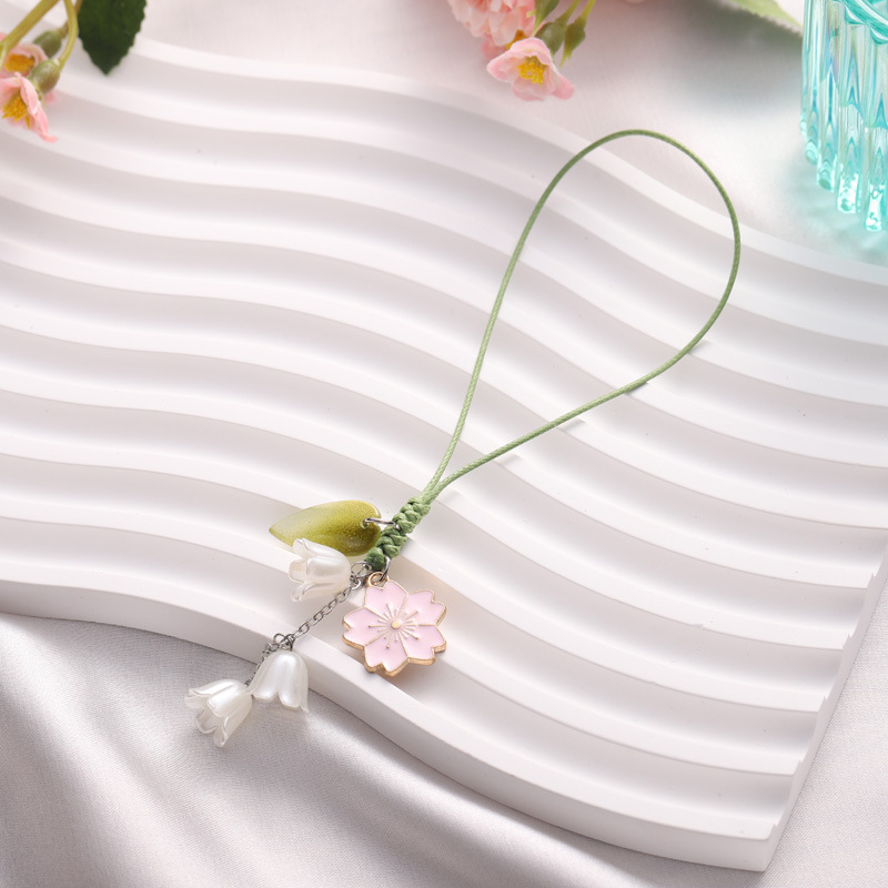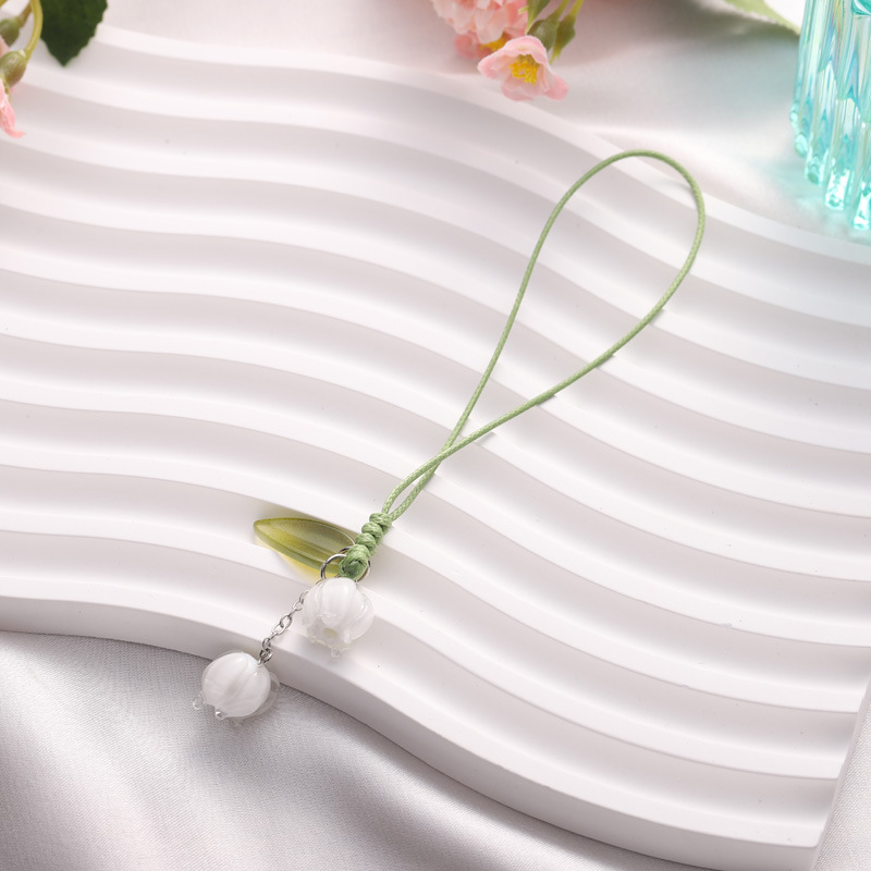 跨境创意花朵钥匙扣手机手绳包包吊坠挂件手机链饰品铃兰花玻璃