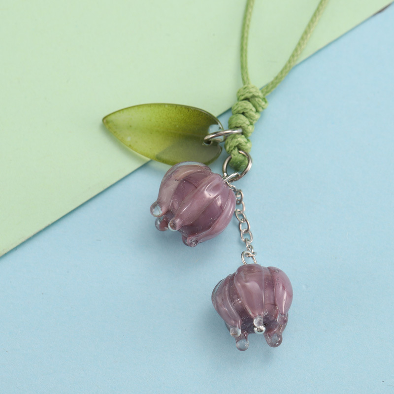 日韓の手作り創意チューリップの花のキーホルダーは個性的なファッションの短い携帯の縄のペンダントのアクセサリーの卸売りを掛けます。