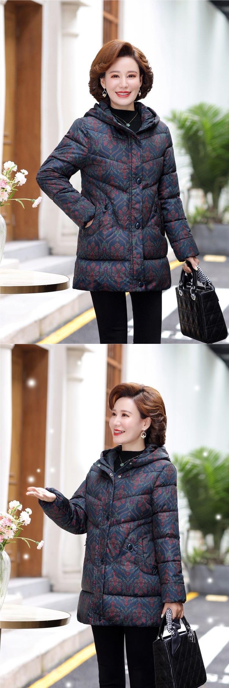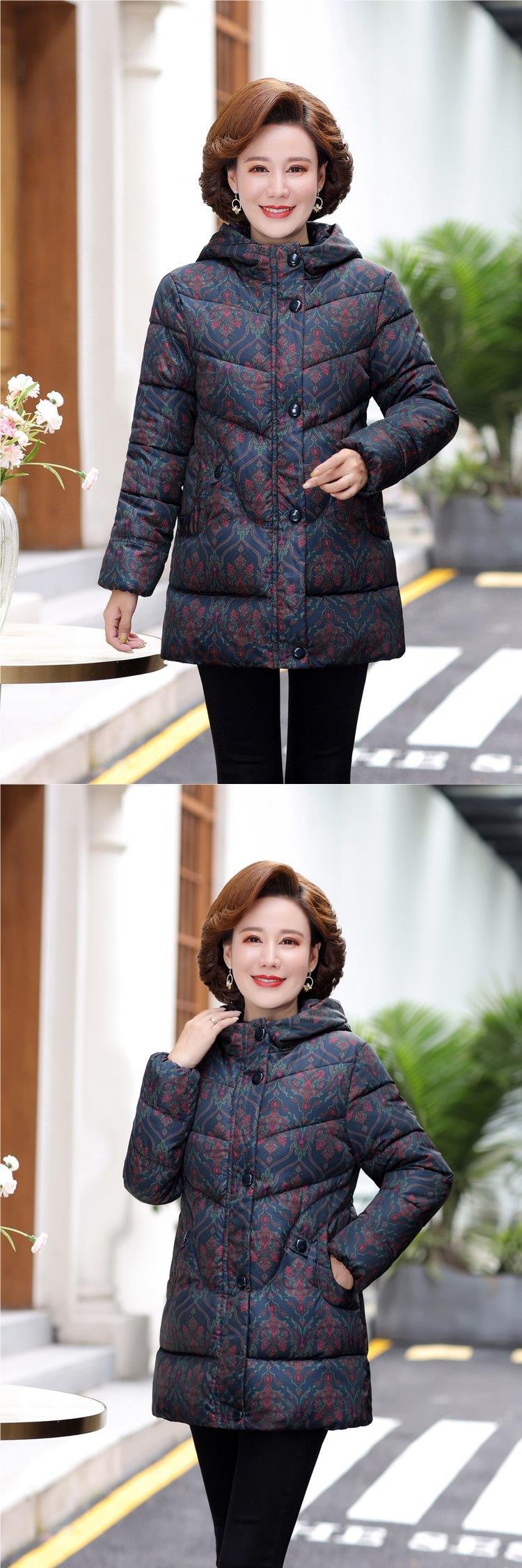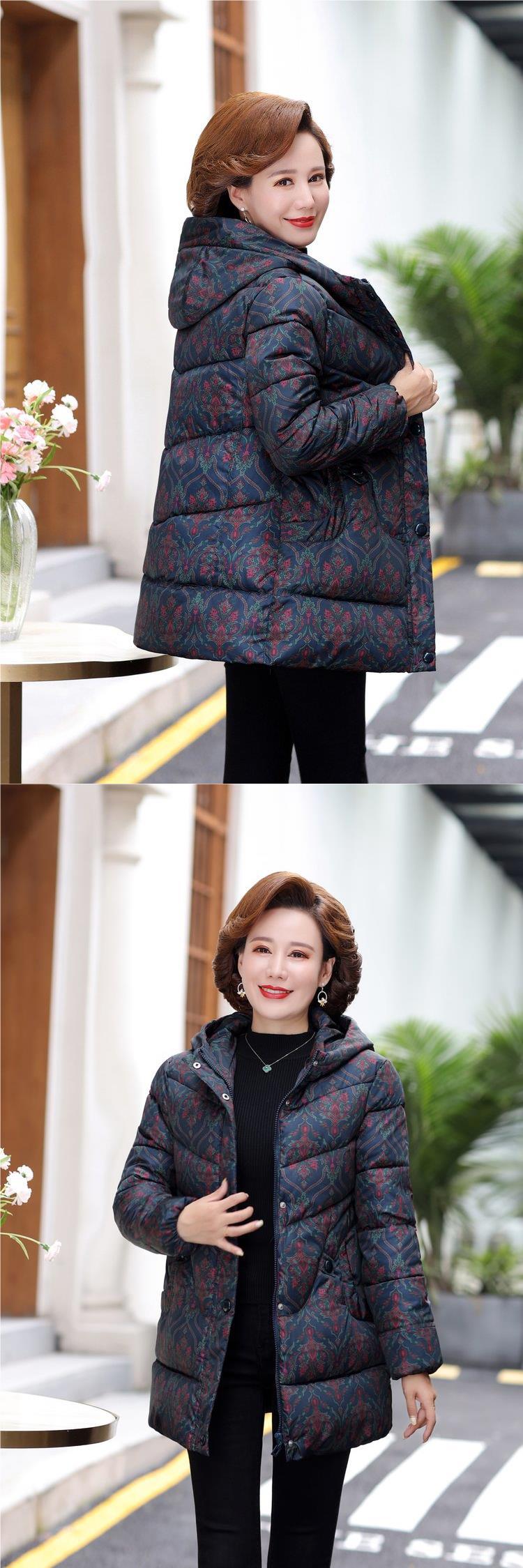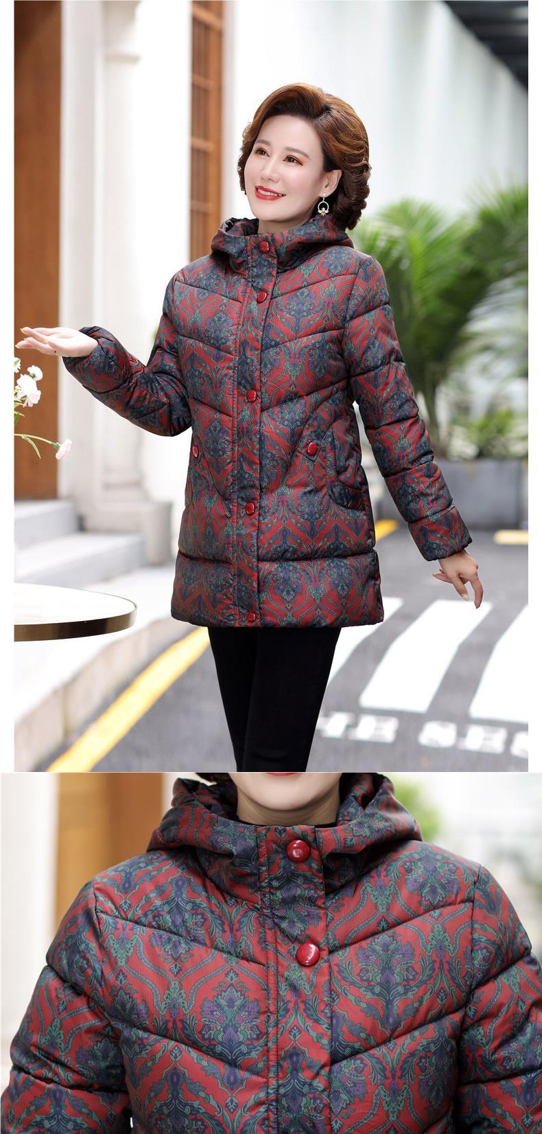 2024新型ママ冬服ダウン綿服女性の中長タイプの中高年秋冬フード付き厚手綿入れコート